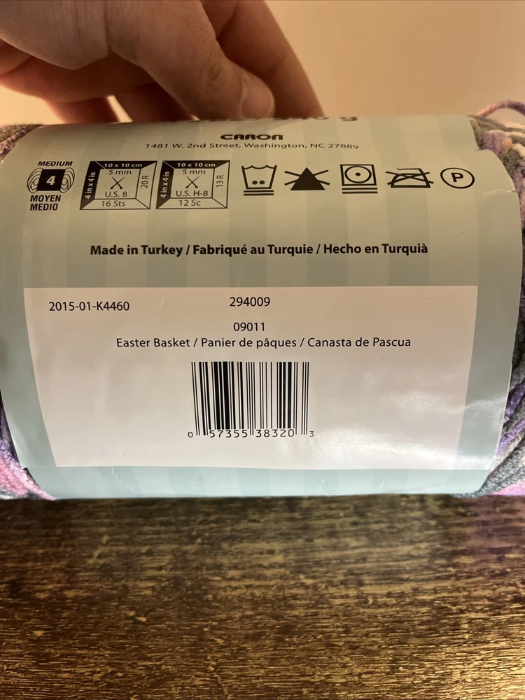 Craft your next project with the vibrant Spinrite Caron Jumbo Print Yarn in the Easter Basket colorway. Each skein is a generous 4 ounces of medium/worsted weight acrylic fiber, perfect for knitting a cozy baby blanket or crocheting a colorful basket. The yarn's Country product line ensures a quality craft experience, ideal for a wide range of crafting needs. Made in the United States, this yarn features a jumbo style that is easy to work with and creates a lovely texture in any creation. The unit of sale is a single skein, allowing for precise planning of your project's materials. The Easter Basket dye lot ensures a consistent and appealing color throughout your finished piece.