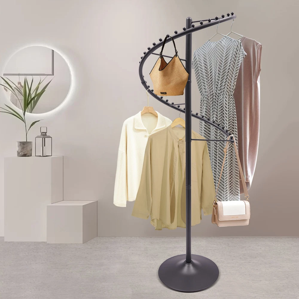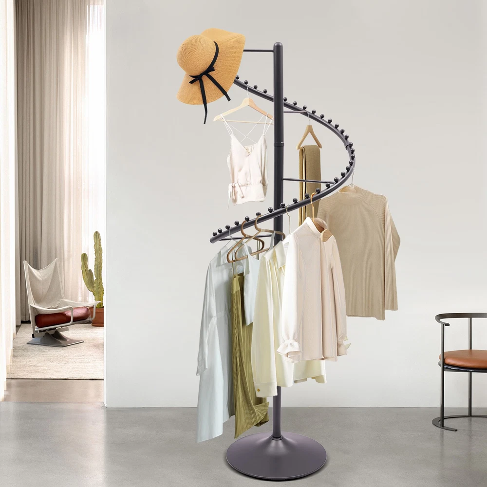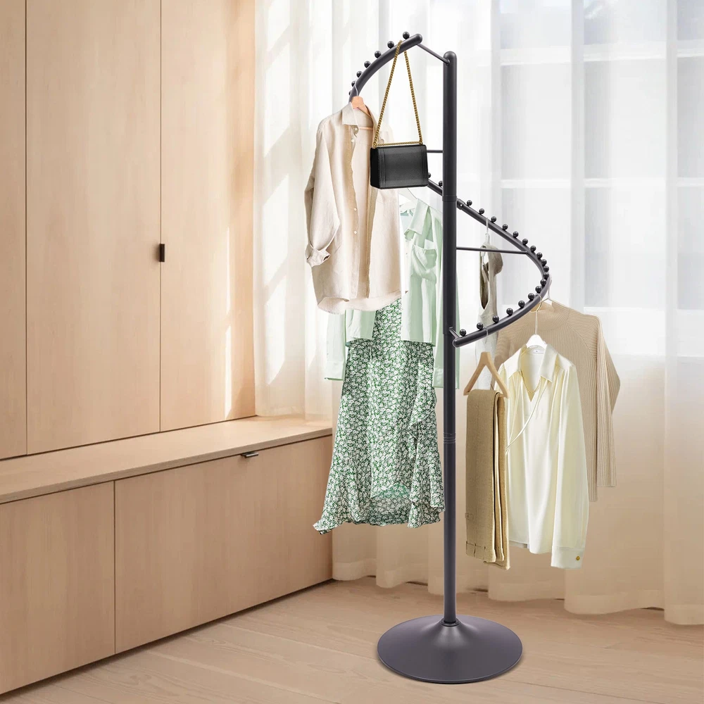 Spiral 360° Rotating Garment Rack - Floor-Standing Clothes Organizer, Black 1.8m Description Are you still struggling with the clutter of clothing organization? Then please take a look at our rotating clothing rack. Our product is designed with a 360° swivel and multiple isolation balls on the hangers for you to easily categorize and hang your clothes. The black exterior and spiral structure add a modern touch to your home decor. It is not only a practical coat rack, but also a delicate home decoration. Key Features Made to Last: This product is made of high-quality iron by painting and welding processes, sturdy and wear-resistant , not easy to rust and deformation, ensuring long service life. 360° Rotating Design: The 360° spiral design allows you to view your clothes from all sides, making it easy to pick and hold your clothes. Exquisite Appearance: The spiral structure, clean lines, and black color appearance show elegance and nobility, adding a modern touch to your home decor. Categorized Storage: The multiple isolation beads and dividing bars on the organize r can help you classify and hang your scarves, clothes, bags, etc., helping you achieve neat and orderly clothes organization. Space Saving: The vertical construction allows for a small footprint, saving you space while organizing your clothes. Easy Assembly: The simple structure and complete accessories make it easy and fast to assemble, ensuring that you can use it in a short period of time. Effortless Cleaning: It has a smooth surface and an open structure, so you only need to wipe the dust or residue with a towel. Ideal Gift: With good performance and a modern appearance, it can be used as an ideal housewarming gift for parents, friends, and lovers so that they can also have a good clothing organization assistant. Good Customer Service: We aim to provide quality products and services. If you have problems, please feel free to contact us. We will reply and solve the problem for you as soon as possible. Details Round Base: Large diameter base (17.72in) effectively prevents the product from tipping over and increases the stability of the product. Dividing Bars: They not only make your classification clear, but also increase hanging space. Application This product can be installed in bedrooms and laundry rooms to hang items such as hats, scarves, bags and clothes. It can also be installed in a boutique or showroom to be used as a commercial-grade drying rack. Specification Material: Iron Color: Black Process: Painting, Welding Style: Modern Assembly Required: Yes Rotation Angle: 360° Mounting Type: Floor Stand Product Height: 1.8m/5.91ft Base Diameter: 45cm/17.72in Package Size: 77*33*36cm/30.31*12.99*14.17in Gross Weight: 9kg/19.84lbs Net Weight: 8.5kg/18.74lbs Package Included 1* Rotating Clothing Rack Other Accessories for Assembly Notes Please allow the slight color difference caused by the shooting light and 1-3cm error due to manual measurement, and make sure you do not mind before ordering. Payment Delivery details Terms of sales About us Contact us Payment We accept ebay payment 。 Fees such as import duties, taxes are not included in the item price or shipping costs. These charges are the buyer's responsibility. Delivery details Shipping: 2-9 working days to: USA Terms of sales We maintain high standards of excellence and strive for hundred percent customer satisfaction. Feedback is very important to us. We hope that you contact us immediately before you give neutral or negative feedback, so that we can address your concerns. It is impossible to address issues if we do not know about them! About us Your satis faction is our ultimate goal. We work hard to earn your trust and future business. Our certified technicians have tested each item before shipping. The unit comes with 1 year limited warranty on all manufacturing defects. a) If you receive a defective item, you may return it or ask for a discount. Please contact us within 14 days after you receive the package. b) What you returned must be intact and in its original packaging as re? u. Customer is responsible for shipping costs of the returned item. c) We will cover the cost of shipping back t with the shipping rate indicated in the registration page. We will send you a new unit or refund the full payment you paid. Thank you. Contact us Business Hour Business Hour: Monday To Friday: 8:30 AM to 5:00 PM (Beijing China time) Due to time zones, our reply to your questions may not be immediately. But within above working time, we will reply your email within 24 hours. If it's non-workdays, please kindly be patient and wait till Monday. Please contact us with ebay message. Please feel free to contact us if you have any questions. Monday To Friday: 8:30 AM to 5:00 PM (Beijing China time) Due to time zones, our reply to your questions may not be immediately. But within above working time, we will reply your email within 24 hours. If it's non-workdays, please kindly be patient and wait till Monday. Please contact us with ebay message. Please feel free to contact us if you have any questions. Brand Unbranded Type Garment Racks
