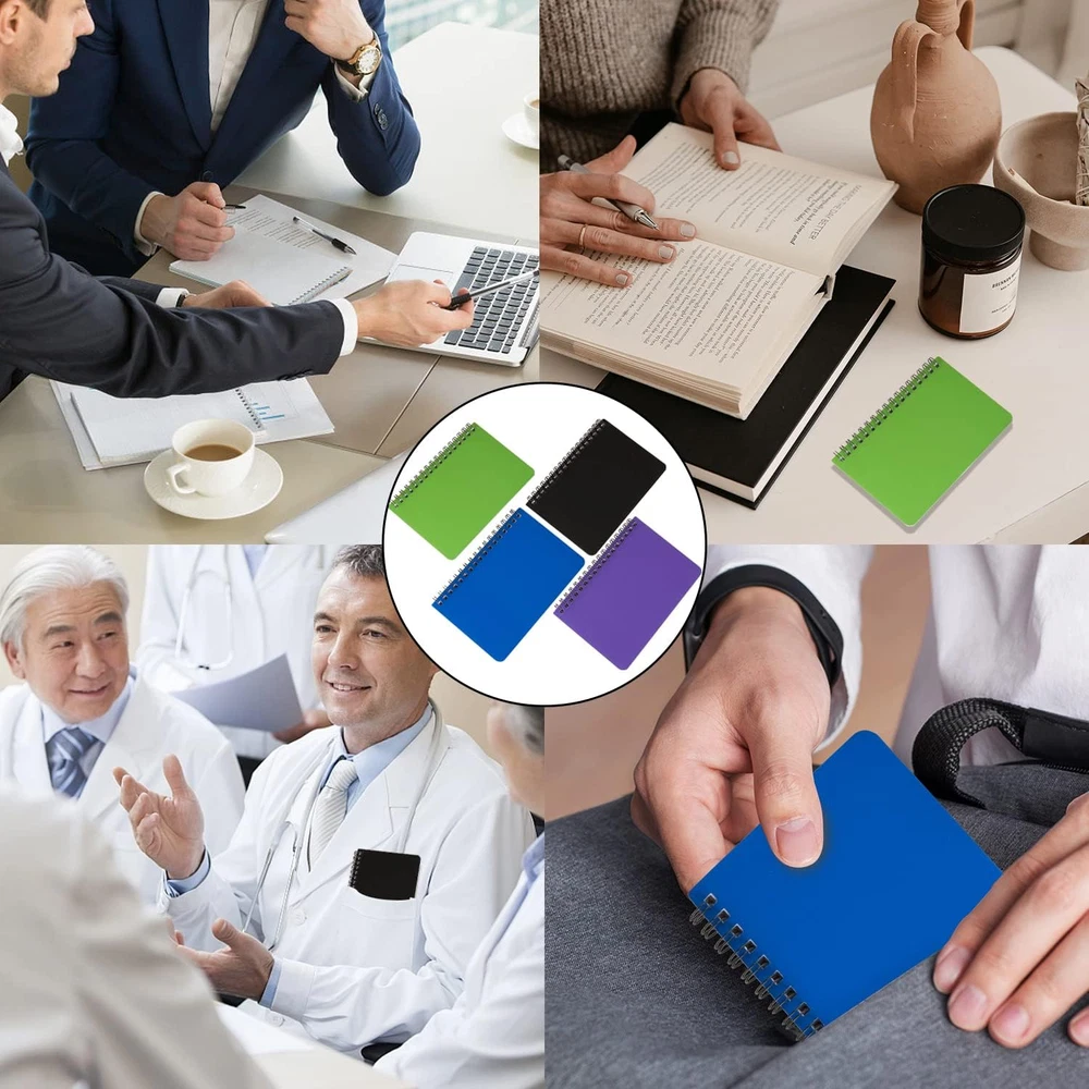 【 4Pack Spiral Notebook 】What a great value for money! 4Pack Spiral Notebook(Black blue green purple)each with 50 sheets and 100 pages 【Pocket Notebook 4"x 6" 】Pocket Notebook 4"x 6" mini size for easy carrying can easily fit into backpacks pants or clothing pockets. 【Pocket Notepad 】Pocket Notepad High quality paper allows notes to slide on the page - the strong back provides solid writing support. Accessible coils can prevent entanglement with paper or clothing 【Small Notebook】Small notebooks are perfect for business executives students adults scientists and many others in the field of work and studyMwhether you're at work home or school. It can be used as a travel notebook journal journal notepad or journal etc. 【Our Services】Thank you for your trust in Spiral Notebook . Product Description