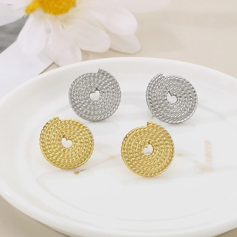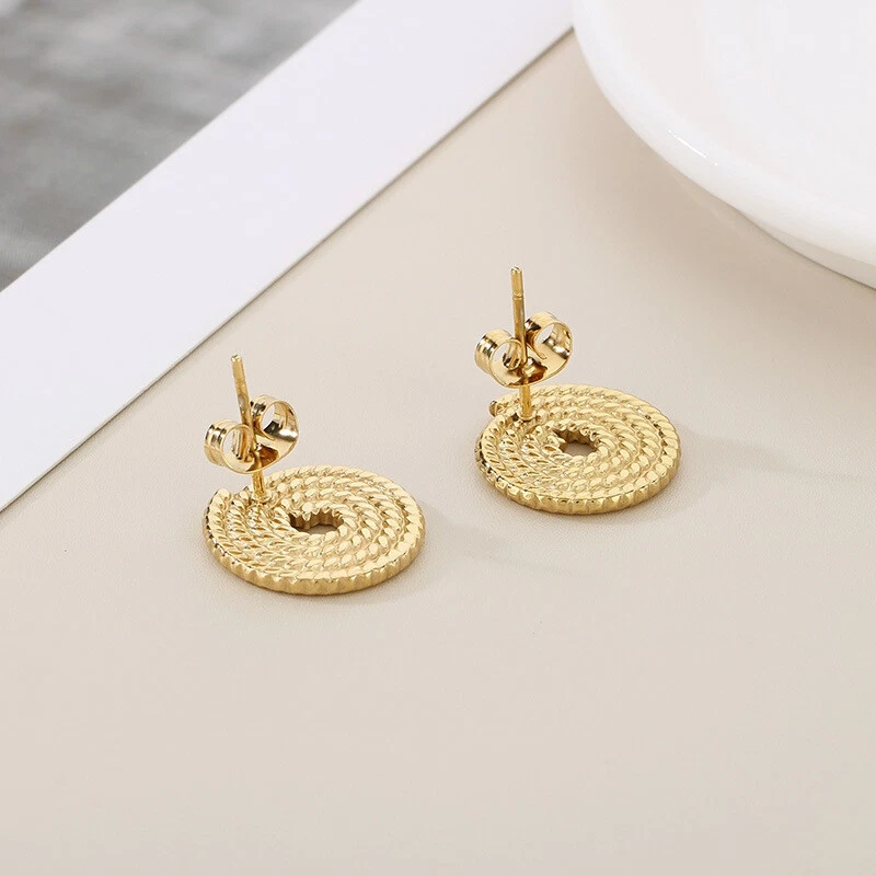 Spiral disc stainless steel earrings titanium steel studs for women
