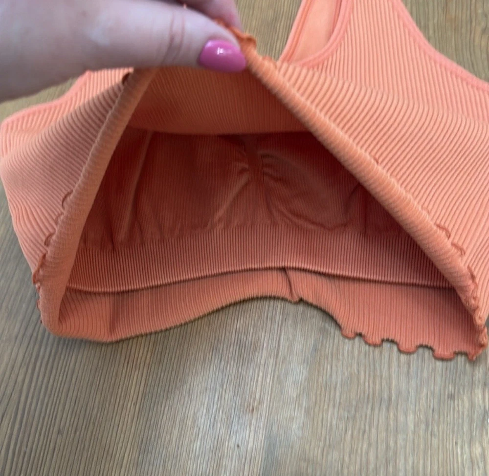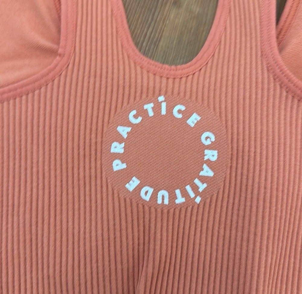 • Scoop neck • Built-in shelf bra • Racerback tank straps • Lettuce hem • Allover ribbed knit • Pullover style Underarm Measurement- 12”