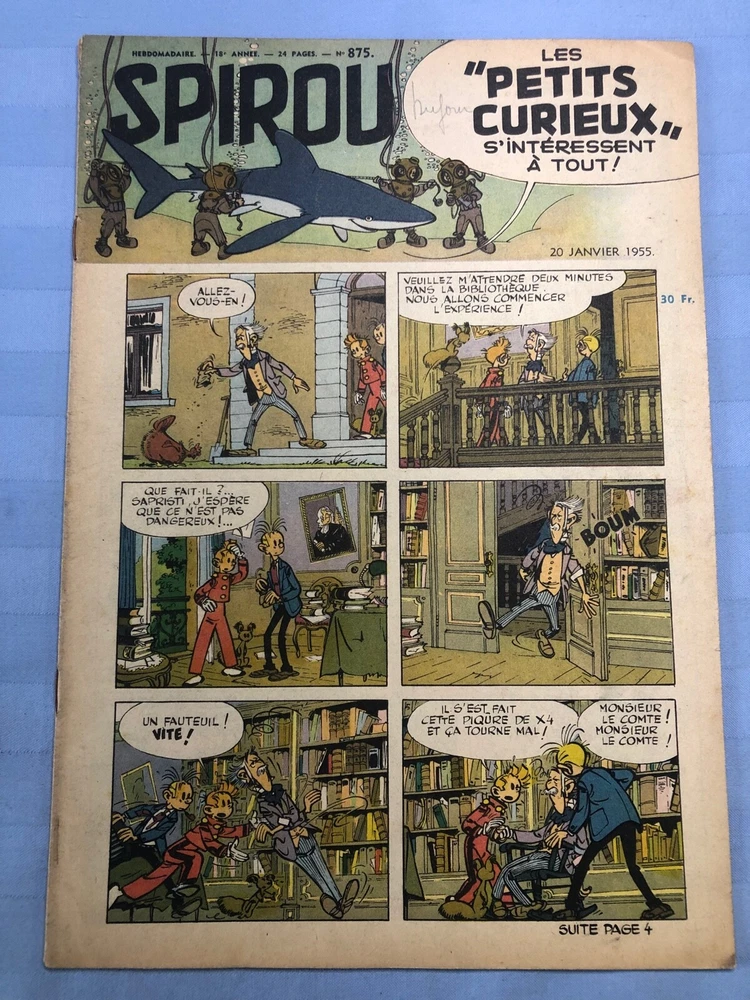 Spirou 1955 Weekly French Editions, set of 5, used 874 875 876 877 878 I brought an extensive collection of Spirou or journal de Tintin from France and will progressively sell these since it takes time to list