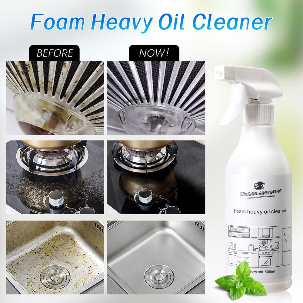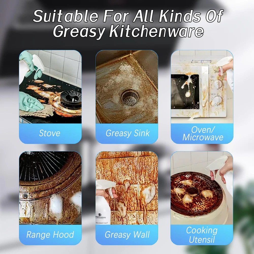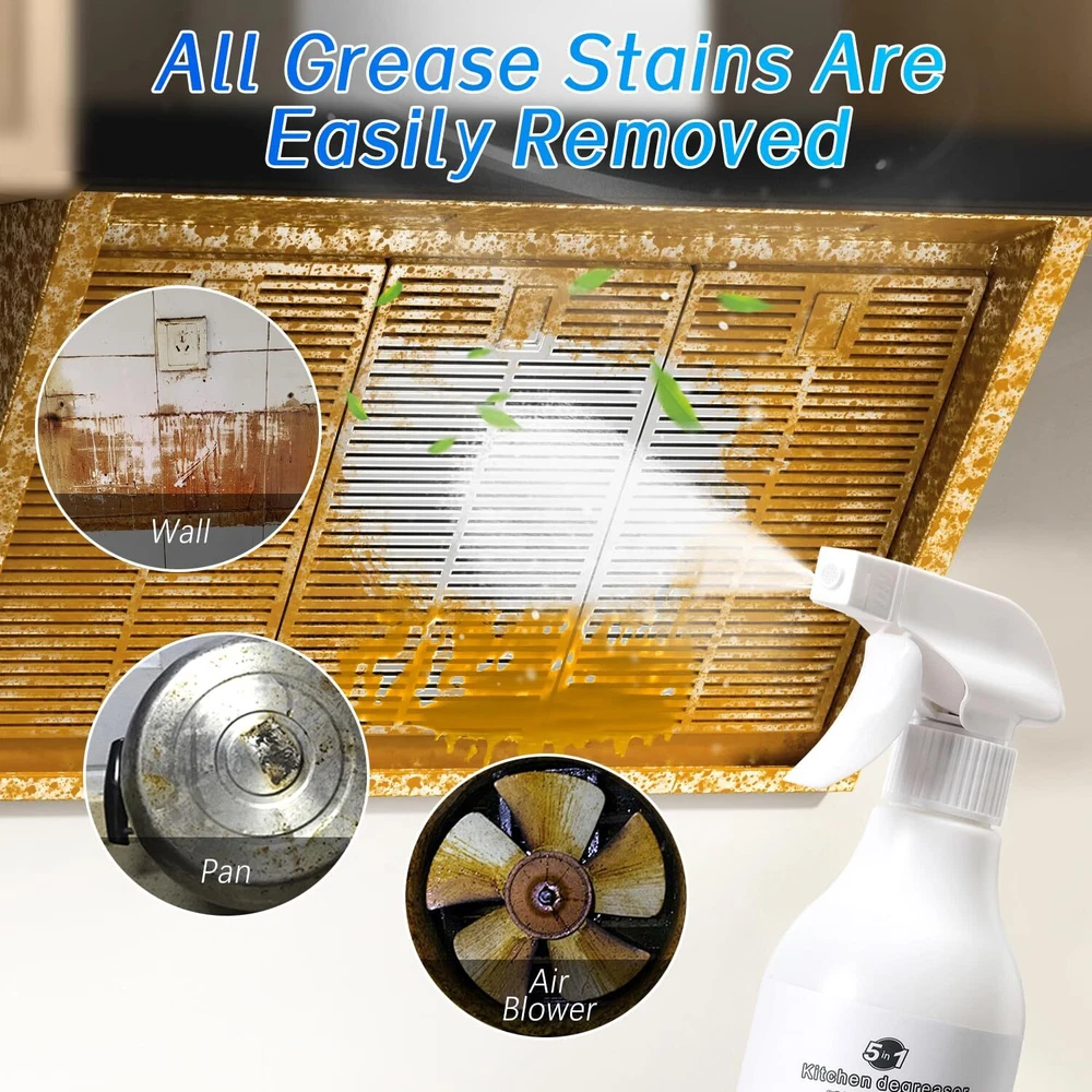 【Splasy Spray All-Purpose Cleaner】Easily tackles stubborn grease and oil buildup on your range hood, making it ideal for heavy oil areas like range hoods and exhaust fans. 【Powerful Foam Spray】Our specially designed formula creates a rich lather that deeply penetrates and cleanses oil for superior results.Effortlessly tackles tough kitchen grease. 【Mild & Non-irritating】Features a mild yet effective concentrated formula that emulsifies oil and dirt upon , creating dense foam that cleanses thoroughly without causing harm to surfaces. 【Easy to Use】From stovetops to cabinets, just 2 steps of spraying and wiping.The kitchen foam cleaning spray has a no-rinse design and rich foam, just spray directly on the desired area, then wipe with a towel or sponge. 【Versatile Uses】Multi-Purpose Kitchen Cleaner From stovetops, cabinets to stainless steel appliances and more, effectively removes grease. Tip:Harmless to furniture & Recommended to wear gloves when using.