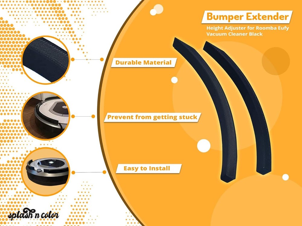STOP THE STRESS – Do you love using your Roomba vacuum cleaner, but hate losing or getting it stuck? SplashNColor is a Roomba extender great to avoid the robot vacuum from getting stuck or loss. QUICK INSTALLATION – At SplashNColor, we value your comfort and convenience. Simply clean the surface before mounting our robot vacuum bumper strips with super glue for best results. ONLY THE BEST FOR YOU – Not only our bumper protector robot vacuum works like a charm, it is also made in the USA using quality materials for long-lasting use. THE RIGHT SIZE – Whether you want it in variety sizes – we have it for you. Choose our multiple sizes available above for a perfect robot vacuum bumper guard fit. OUR PACKAGE – Now you can have a handy solution for lost or stuck robot vacuum. Included in our package are 2 Pack Roomba Extension Vacuum Robot Bumper.