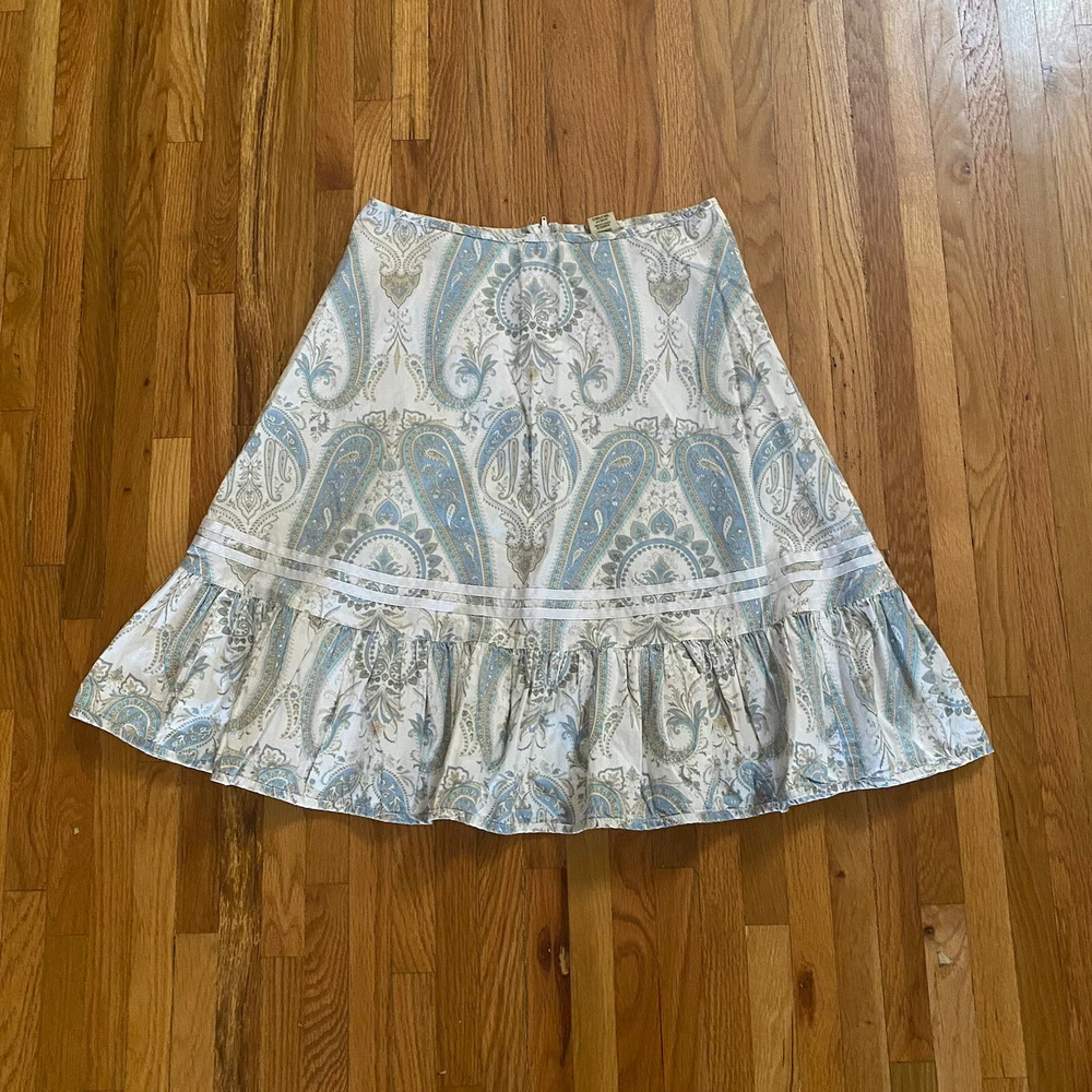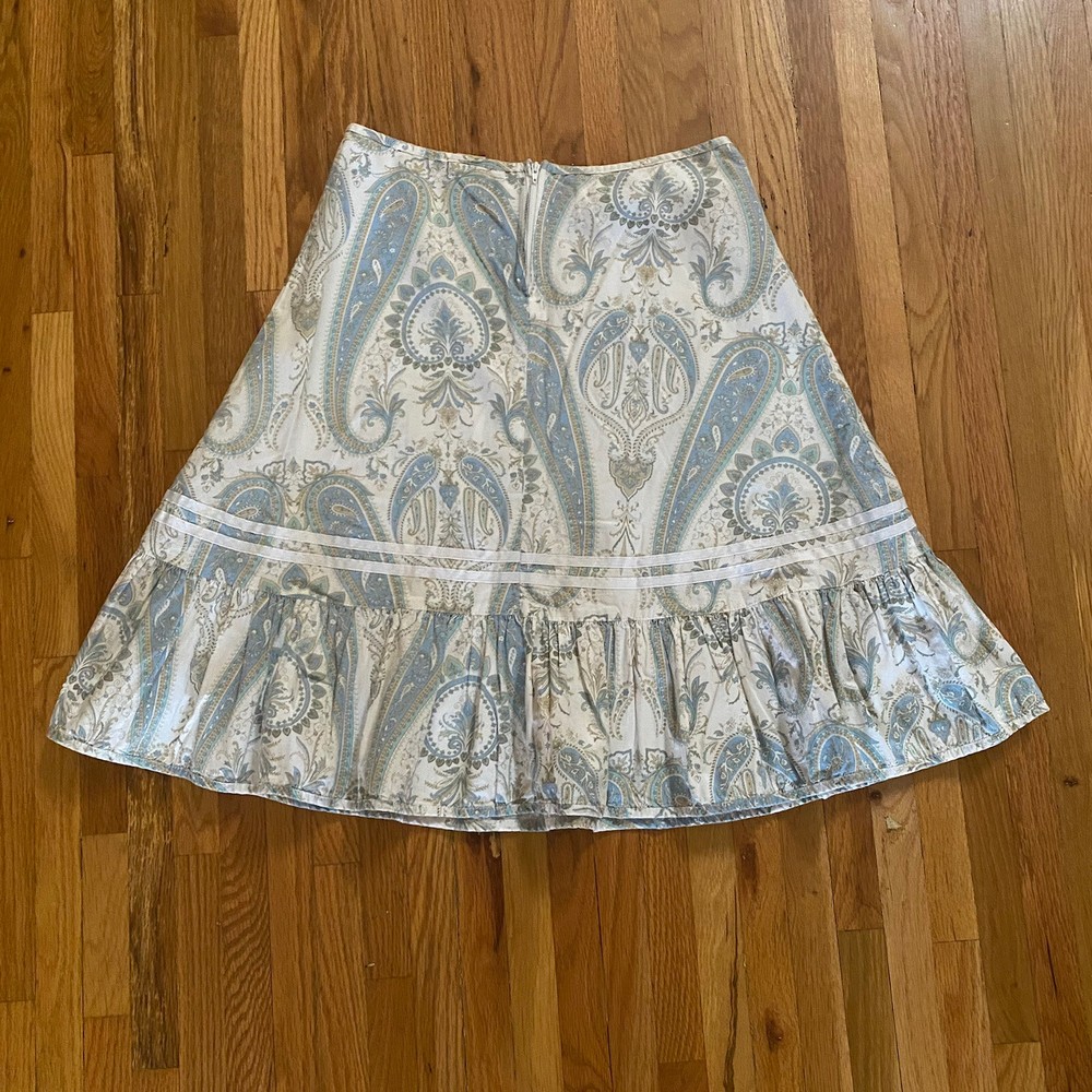 Split A-Line Skirt ~ Sz 5 ~ White ~ Knee Length ~ Paisley ~ Zip ~ 14" Across Top ~ 20.5" Across Hips ~ 26.5" Across Bottom ~ 22.5" Length Item is in good condition. No holes, rips or stains. Returns: If you decide you do not like the item or it does not fit I do accept returns within set amount of time. Payment: I do not require immediate payment, however please pay as soon as possible. Shipping: I do offer combined shipping. It is highest price plus $2 each additional item. Feedback: Feedback is automatically left after customer leaves me feedback. Condition: I try to be reserved when putting in the condition. Items are usually better than described unless it is vintage. Vintage may be a little more worn sometimes. If you have a question about condition, please ask. Thanks again for your interest in my item. I really do appreciate your business!