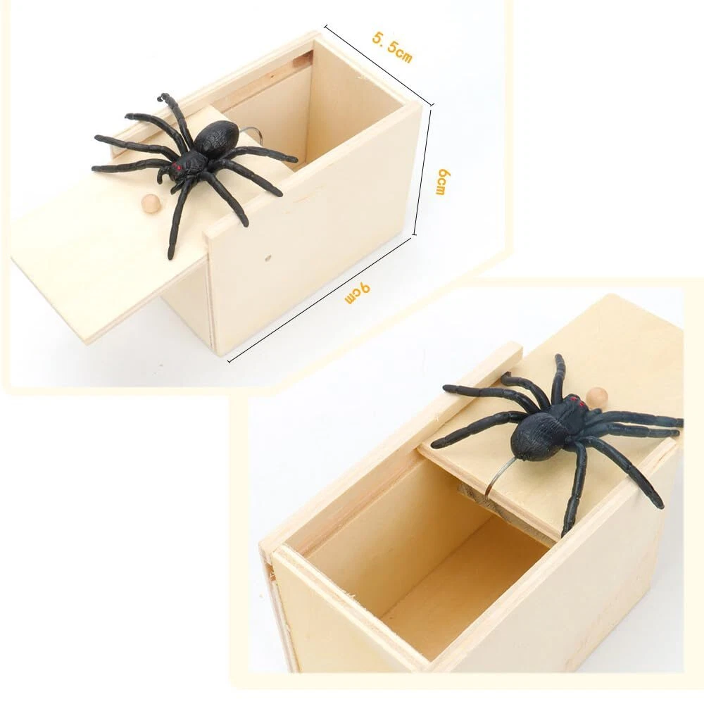 Spoofing prank toy spider spooks a wooden box Spoofing prank toy spider spooks a wooden box, Everyone loves harmless, funny pranks that give people happy surprises and excitement. Rubber spiders are great prank toys Perfect for parties, family fun, between friends, easy to use! Just hand the box to someone and they'll naturally want to open it up and see what's inside. A real rubber spider jumps out Wooden boxes and rubber spiders,Not suitable for children under 11 years of age. Your satisfaction is our top priority. We will do everything in our power to ensure that you are completely satisfied with your purchase.