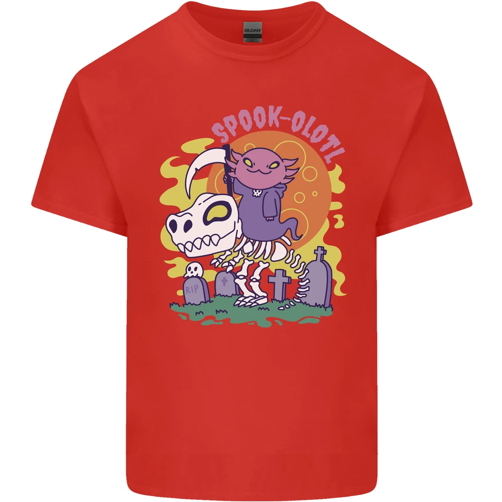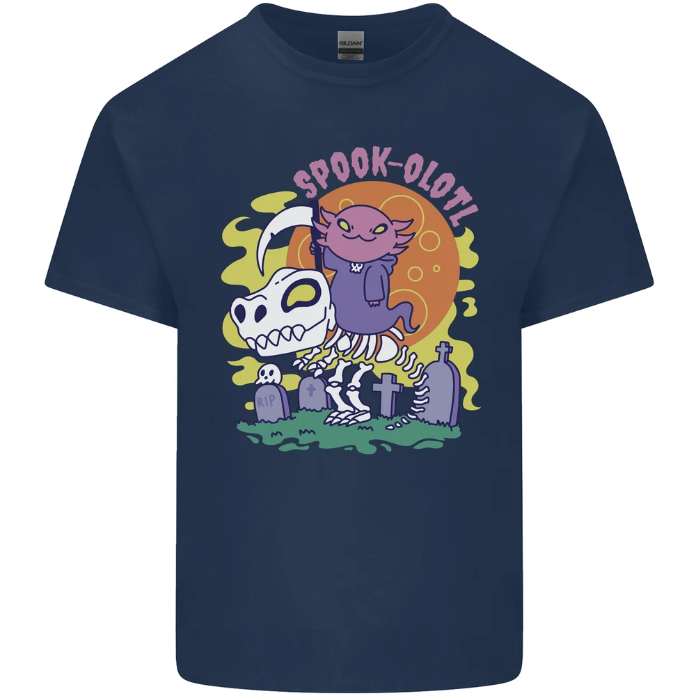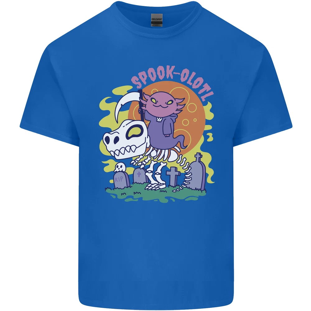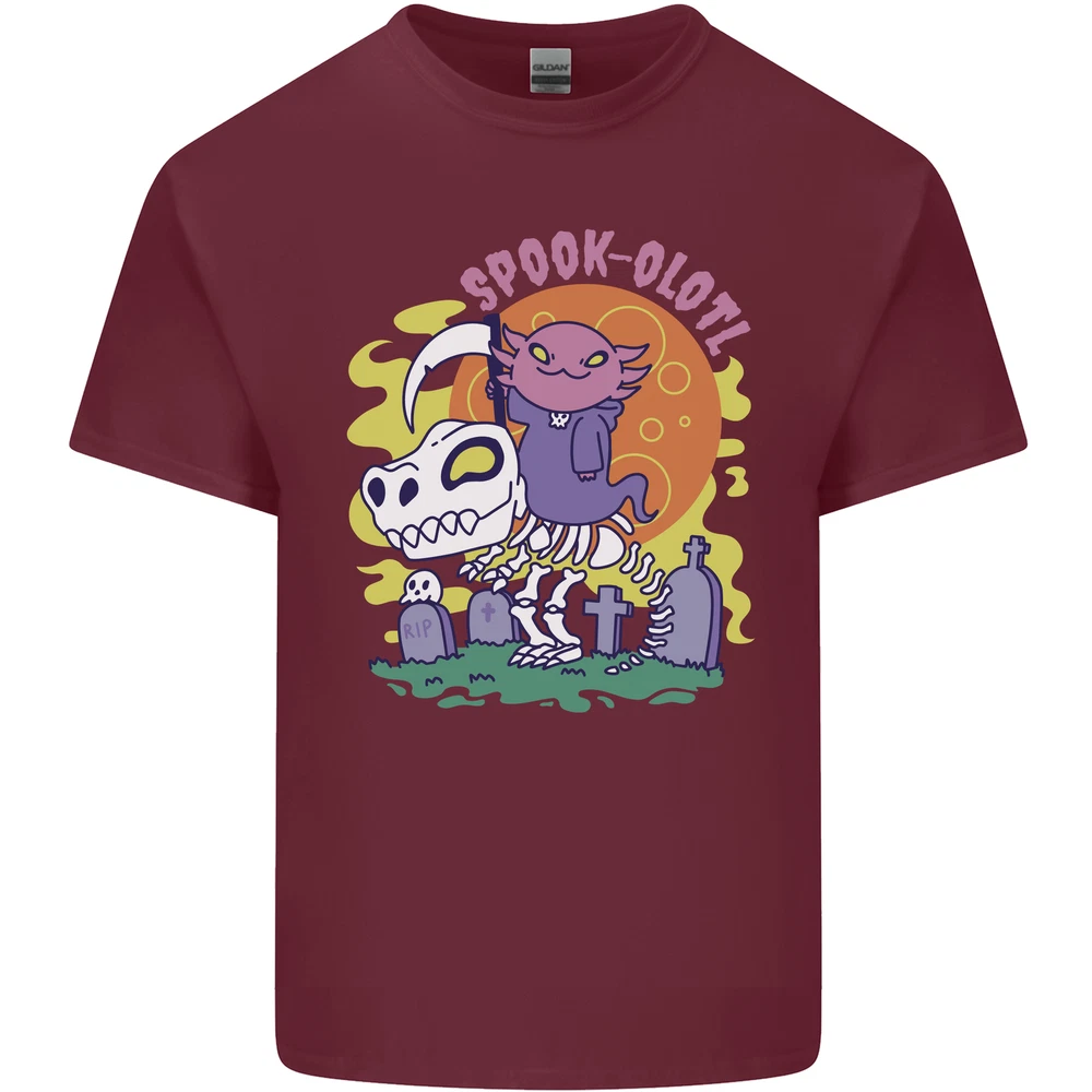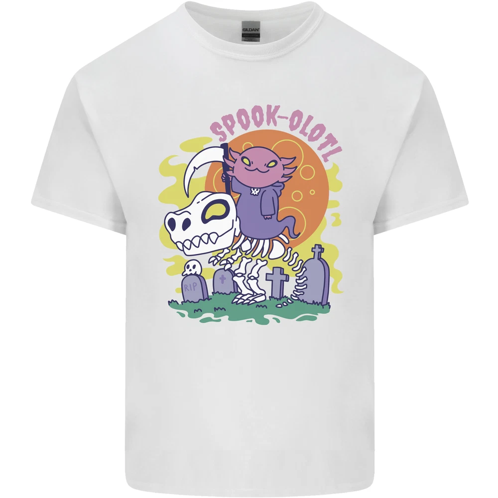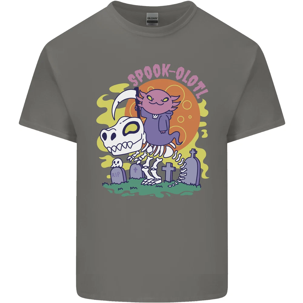 Spookolotl Funny Halloween Axolotl Grim Reaper Mens Cotton T-Shirt Tee Top