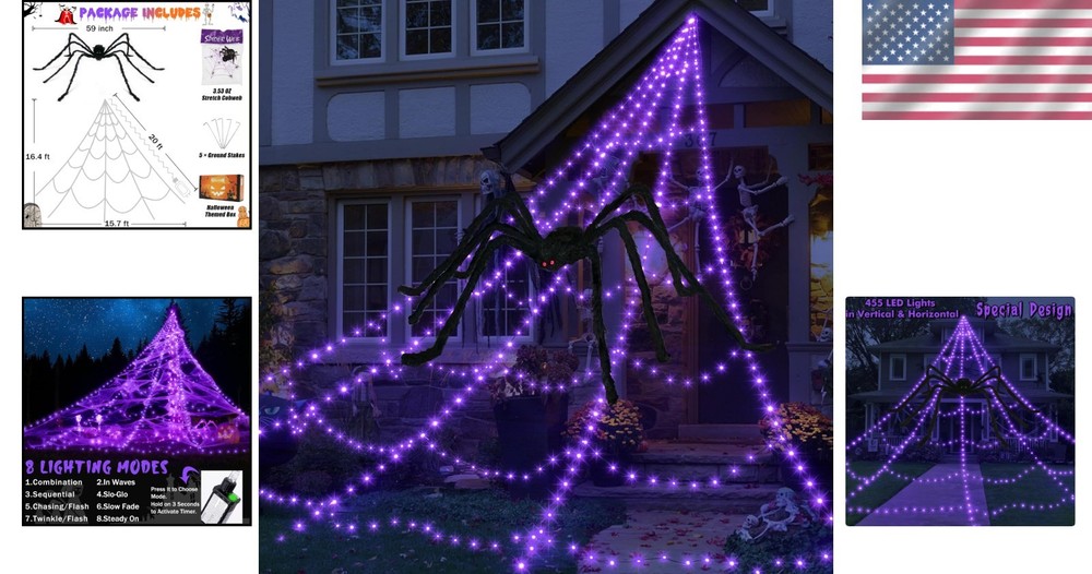 Spooky 455 LED Spider Web Decoration with Large Spider - Timer & Waterproof ‹ › ‹ › ‹ › ‹ › ‹ › ‹ › ‹ › ‹ › Spooky 455 LED Spider Web Decoration with Large Spider Transform your Halloween into a spine-chilling spectacle with our exquisite 455 LED giant spider web decoration! Measuring a super-sized 16.4 ft in length and 15.7 ft in width, this enchanting piece will cast a mesmerizing and eerie glow across your yard, perfect for trick-or-treaters and festive gatherings alike. Features: Large, creepy spider (59" W) with fearsome red eyes rests among the web. Covers over 350 sq.ft with a generous amount of super stretchable cobweb. Unique triangular design with horizontal and vertical lights for an eye-catching display. 8 different lighting modes including Twinkle, Fade, and Steady On, allowing you to customize your holiday ambiance. Timer and memory function for convenience - 6 hours on, 18 hours off automatically! Safer 4.5 V low voltage design and waterproof rating for use in any weather condition. Easy to set up: includes ground stakes and a 20 ft lead cord for added convenience. Benefits: Creates a captivating and spooky atmosphere for Halloween themed parties or simply to delight your neighbors. Durable and designed to withstand outdoor elements without losing its eerie charm. Fast and simple installation that lets you enjoy the Halloween spirit in minutes. Versatile decor that can be used for both indoor and outdoor extravaganzas. Why choose our Spooky Spider Web Decoration? Why settle for ordinary decorations when you can have an oversized, illuminated spider web that will make your house the talk of the neighborhood? Our decoration not only exudes a haunting glow with its scattered LED lights, but it also provides a realistic ambiance with the inclusion of a fearsome spider watching over your ghoulish display. Your Halloween will be elevated to new heights with this intriguing and captivating piece! Embrace the spirit of spookiness and ensure your place is the ultimate destination for Halloween fun this ! Order your Spooky 455 LED Spider Web Decoration today and get ready to enchant and frighten your guests! Shipping Free & Fast Shipping - We offer free shipping to most of the USA with a normal delivery time of 3-7 days. However, due to the current situation, additional delivery time (up to 3 weeks) may be required for some items. Alternative Carriers - We may use alternative carriers (e.g. USPS, FedEx, UPS, etc.) to ensure your package arrives safely and on time. Due to the use of multiple carriers, we are unable to provide a tracking number automatically. Handling Time - Orders are processed and shipped within 1-2 business days of receiving cleared payment. Shipping Restrictions - Shipping to Alaska, Hawaii, Puerto Rico, Guam, and other US territories may incur shipping charges or delivery restrictions. Please contact us before ordering, or your order can be refunded/cancelled. State Restrictions - There may be restrictions based on your state of purchase. For example, certain items may not be shipped to California due to state regulations. Contact for Tracking Updates - If you require tracking updates or have any concerns about the delivery of your order, please feel free to contact us, and we will be happy to assist you. Return 30-Day Hassle-Free Returns - We want you to be completely satisfied with your purchase. If you are not, you can return the item within 30 days of receiving it for a full refund or exchange. Easy Return Process - To start a return, simply contact us and we will provide you with a prepaid return shipping label and detailed instructions. Restocking Fee - There are no restocking fees for returns. However, the buyer is responsible for return shipping costs if the return is not due to a seller's error. Refund Processing Time - Refunds will be processed within 5 business days of receiving the returned item in its condition. Payment We accept all major credit cards, PayPal, and Apple Pay for your convenience. Your payment information is secure and encrypted to ensure a safe and seamless transaction. Please complete your payment within 3 days of purchase to avoid any delays in shipping. Feedback Your feedback is extremely important to us. We strive to provide the best products and customer service possible. If you are satisfied with your purchase, please take a moment to leave us a positive review. If you have any concerns or issues with your order, please contact us before leaving negative feedback. We are committed to resolving any problems and ensuring your satisfaction. Contact Us If you have any questions or concerns, please feel free to out to our customer support team. You can contact us through the eBay messaging system. We are available Monday to Friday, 9:00 am to 5:00 pm EST, and we will do our best to respond to your inquiry within 24 hours. Buy it now and enjoy a pleasant shopping experience! Item Height: 3.3 Inches Unit Quantity: 455 Occasion: Halloween Design: Novelty Light Color: Purple Material: Plastic,Soft Plush Control Style: Push Button Features: Flexible,Remote Control,Timer Type: Halloween Spider Web Lights Sensor Type: Motion Bulb Shape Code: A19 Color: Purple Power Source: Electric LED String/Strip Type: WS2811 Cord Color: Black Number of Lights: 455 Era: 2000s Lighting Technology: LED Finish: Brushed Size: Large Amperage: 1 A Voltage: 4.5 V