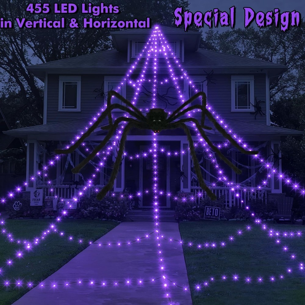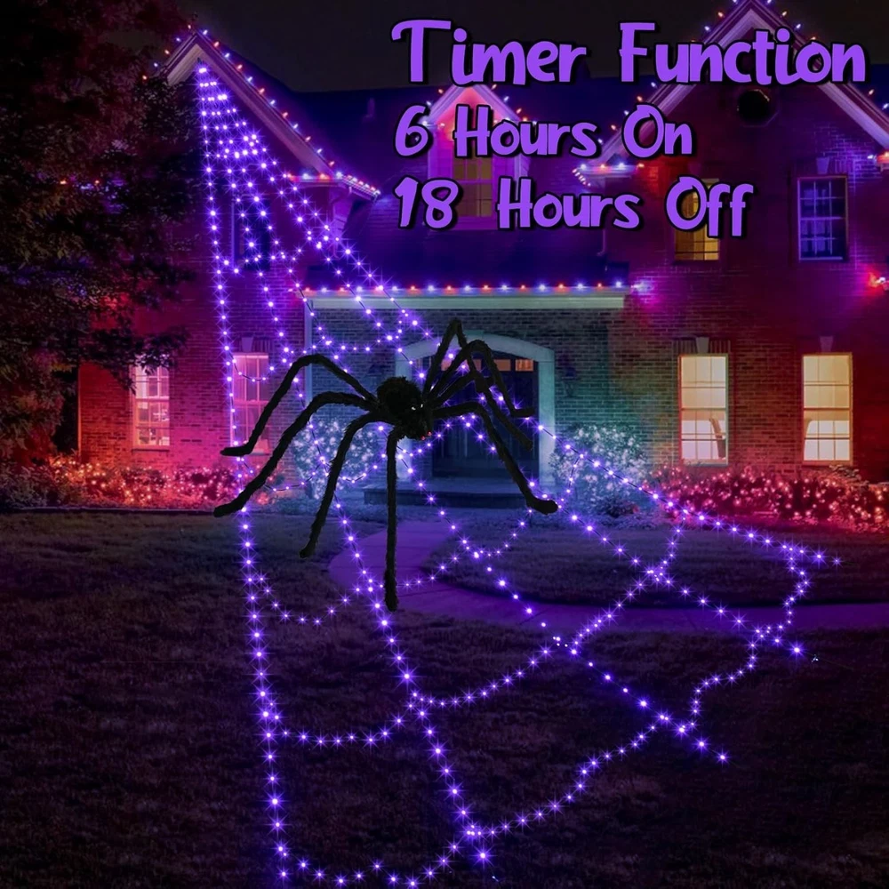 Spooky 455 LED Spider Web Decoration with Large Spider - Timer & Waterproof