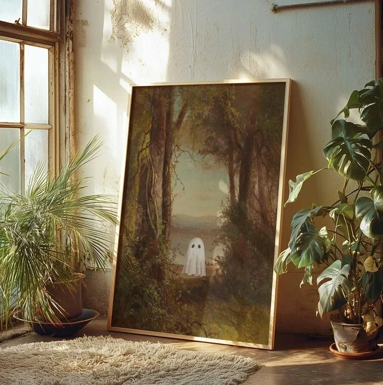 Spooky Forest Ghost Art Print | Vintage Halloween Wall Decor