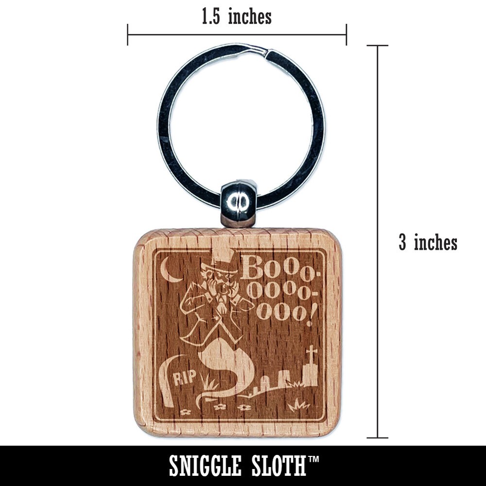 Spooky Ghost Boo Engraved Wooden Halloween Keychain Charm