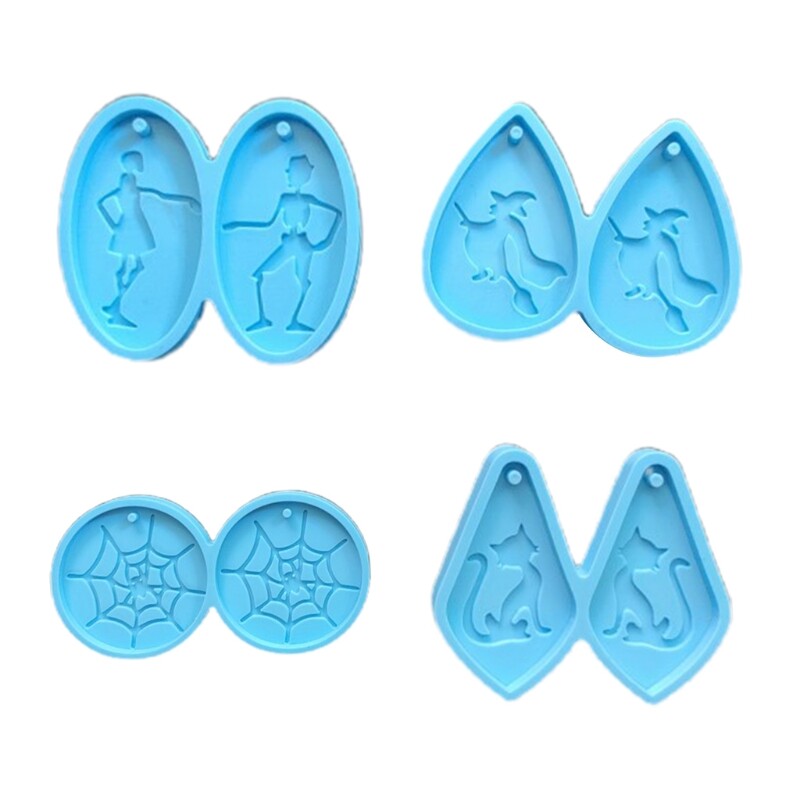 Halloween Earring Resin Silicone Epoxy Casting Jewelry Making Features: and high Suitable for earrings, necklace pendants, jewelry, auto parts, for key chain on phone, bag decorations, Keep the resin jewelry molds interior smooth and before use, then it’s easy to out your finished item after it’s completely cured the epoxy molds with soap water and storage them away from direct sunshine and Also you can add various glitter sequin, dry flower and pearls to make your own Various Halloween applied for various occasions, such as Halloween parties, gathering, outdoor traveling, Christmas parties, New Year's Eve, daily dressing, Great gifts for your family and Specifications: Color:Blue Silicone Size1: 4.5x4cm/1.77x1.57in Size2: 5.5x4cm/2.16x1.57in (More detailed,please see photo.) Quantity: 1pc/4pcs Package Includes: 1x Earring Mold note: Please allow a little error on the size due to manual measurement. The color might exist slightly difference due to different displays.