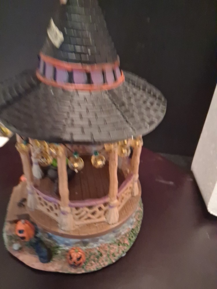 Add a touch of whimsy to your Halloween Village with the Lemax Spooky Town Witch Gazebo. This charming accessory encapsulates the festive spirit of autumn, complete with resin craftsmanship that captures the eerie essence of Halloween. It's a delightful piece for collectors and seasonal decor enthusiasts alike. Cute estate find like new condition see pictures for details perfect addition to any Halloween display could make a great gift shipped right out USPS ground advantage The intricate detailing of the Witch Gazebo reflects the quality and creativity of the Lemax brand, known for their seasonal collections. Whether you're creating a spooky tableau or accenting your fall display, this gazebo adds a magical element to any setting, sure to enchant guests and trick-or-treaters.