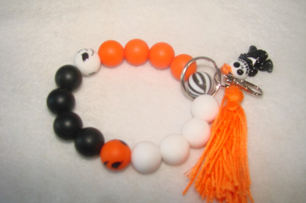Festive Christmas Wristlet Keychain with Jewelry Bead for Handbags