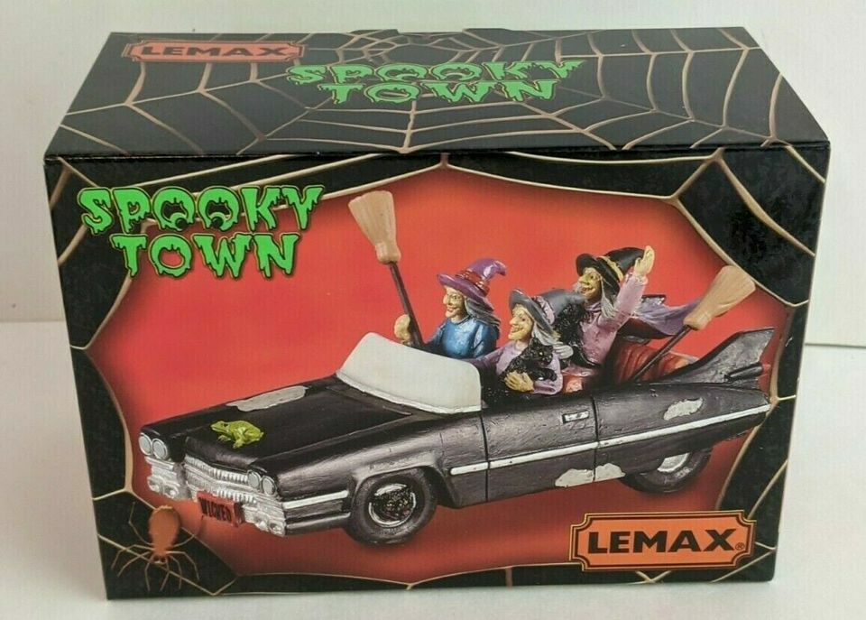 PLEASE ASK ANY SPECIFIC QUESTIONS BEFORE MAKING THE PURCHASE. Lemax 13552 Girls Night Out On Halloween: This authentic Lemax Table Piece is an ideal addition to your Spooky Town Collection. Girls Night Out on Halloween is about to get witchy. This table piece is a black Halloween-themed convertible with black cat rims. Inside the car are three witches enjoying their joy ride around town while they hold onto their trusty black cats and brooms. The witches are dressed in their standard witches' hats and capes. A green toad sits on the hood of the car, joining along for the ride. Approx. size (H x W x D) 2.20 x 4.41 x 1.97 inches 5.6 x 11.2 x 5 cm Year Released: 2021 Made of: Polyresin Product type: Table Accents S/H FOR THIS ITEM WILL BE $6.00 IN THE STATES AND WILL INCLUDE DELIVERY CONFIRMATION. ALL SHIPPING IN THE STATES WILL BE DONE USPS, FIRST CLASS OR PRIORITY! WILL SHIP WORLD-WIDE.