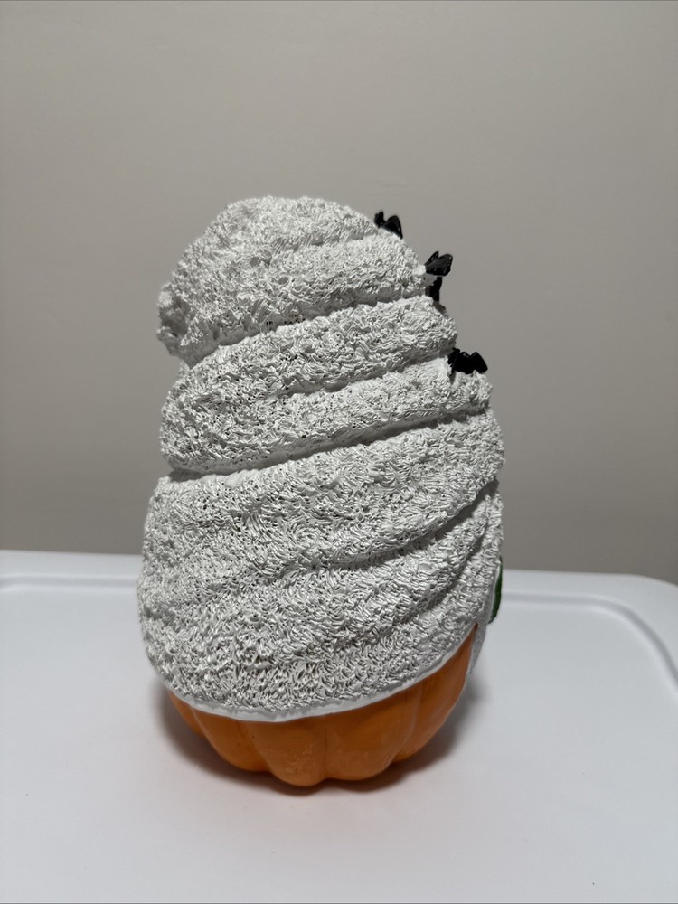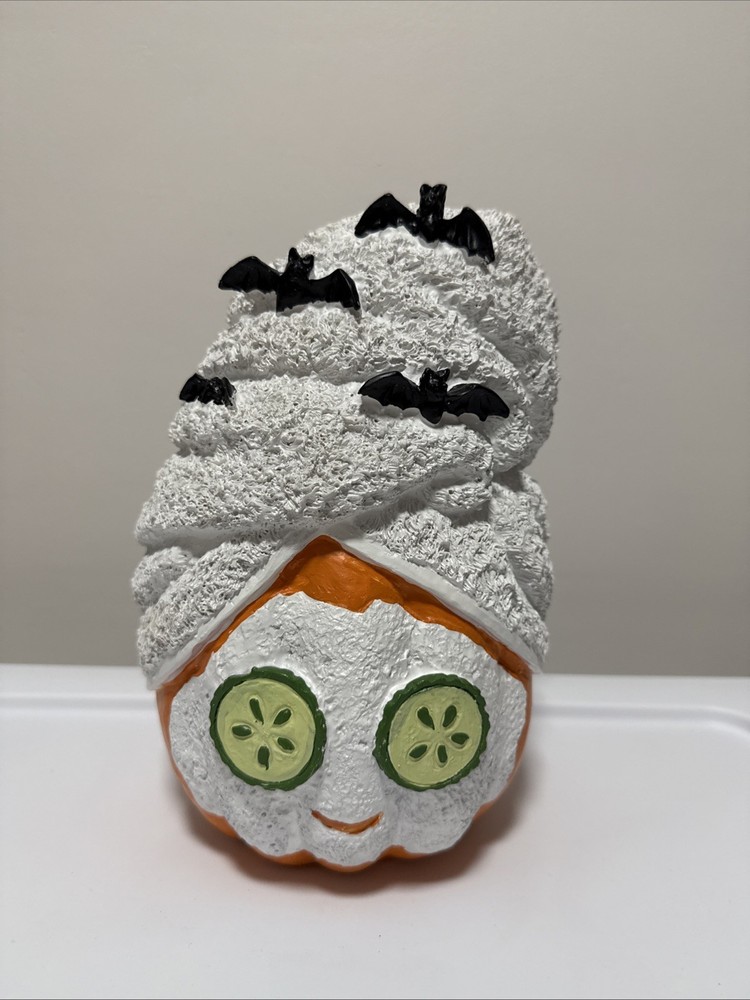 The Spa facial pumpkin head towel with bats is a unique and whimsical collectible item perfect for adding a touch of Halloween charm to your home decor. This towel features a fun and festive design with a pumpkin head and spooky bats, making it an ideal addition to your seasonal decorations. Use it as a quirky accent piece in your bathroom or kitchen, or as a fun towel to use during Halloween festivities. This item is sure to bring a touch of Halloween cheer to your space.