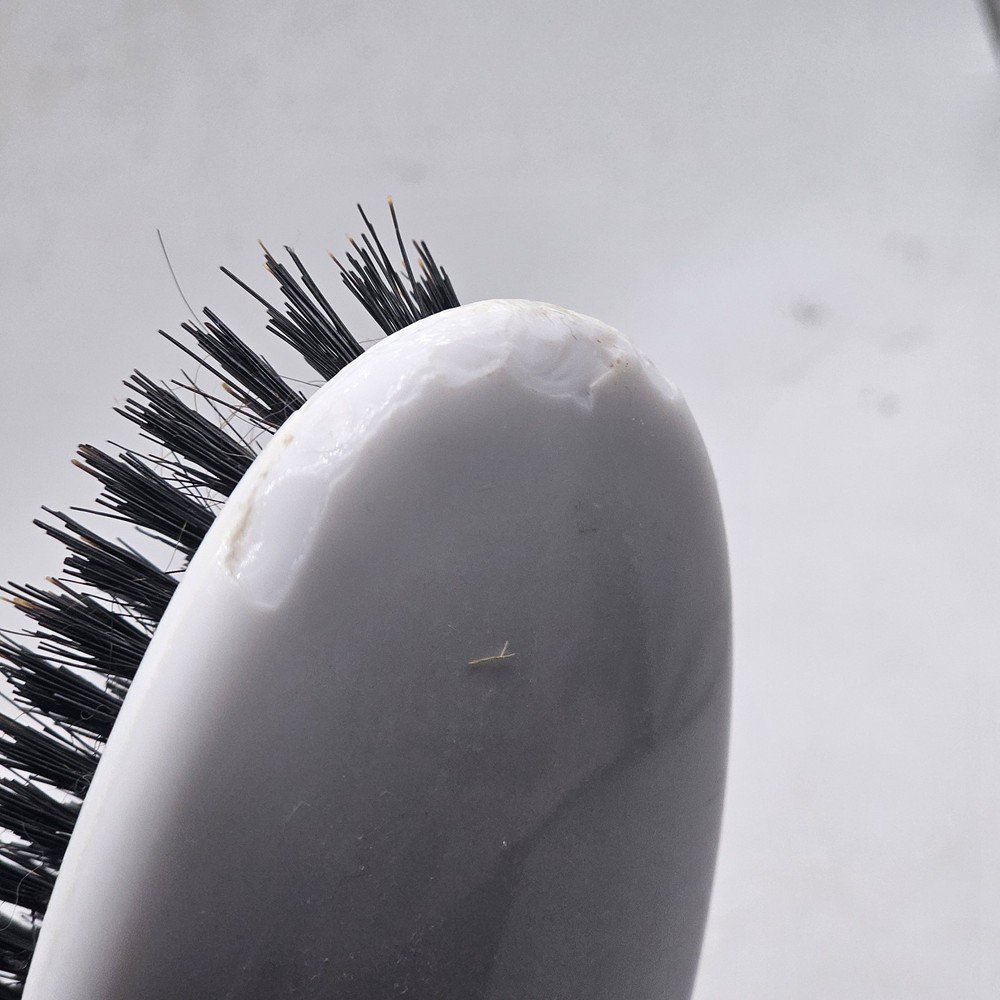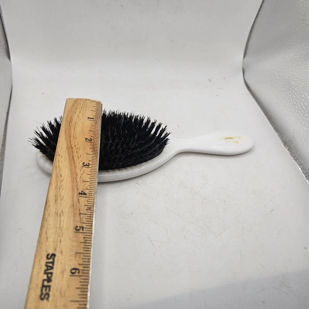 Spornette Classic Gentle Cushion Bristle Oval Hair Brush White Handle Vtg. This is used. There are chips all around. See photos for wear sold as is