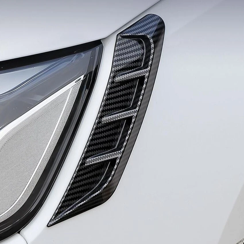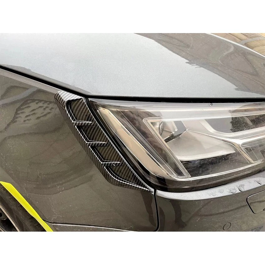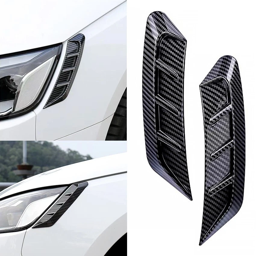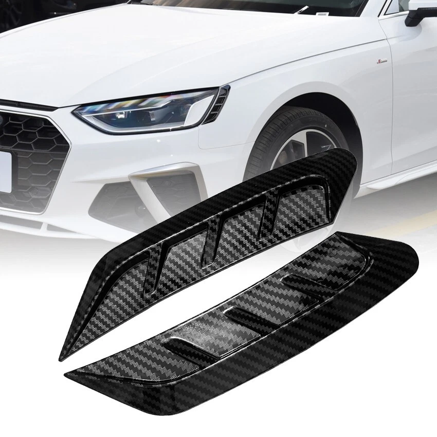 Color:Carbon fiber Black Material: Soft Carbon Fiber with rubber(not Hard Model ) Size: As picture Features: 1. One pair (left & right) of pre-cut front headlight carbon fiber side fender cover vent trim. 2. Rigorously tested to meet strict factory standards. 3. Guaranteed high quality. 4. Easy installation with adhesive tape. 5. No need to alter the original car structure; can be applied directly without drilling.
