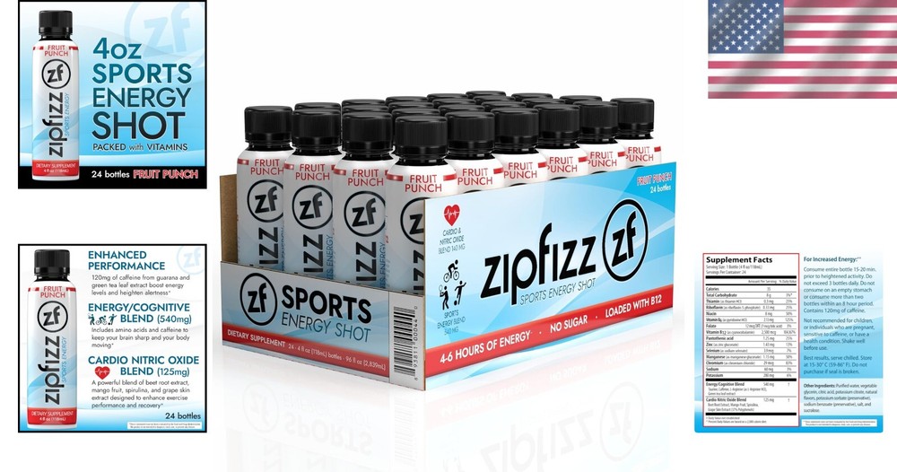 Sport Energy Shot Fruit Punch 4oz Hydration B12 Nitric Oxide 24 Count ‹ › ‹ › ‹ › ‹ › ‹ › ‹ › Sport Energy Shot - Fruit Punch (4oz) Hydration and Vitality, 24 Count Unleash your potential with our Sport Energy Shot, a powerful blend crafted to deliver cognitive and energy support, perfect for keeping you sharp and energized throughout your day. Key Features: Cognitive and Energy Support: A meticulously formulated blend designed to enhance mental clarity and focus. Powerful B-Vitamins: This energizing formula offers natural energy without jitters, ensuring you sustain vitality and focus all day long. Electrolyte Boost: Infused with essential electrolytes like potassium and sodium, it promotes hydration for peak performance on even the busiest days. Nitric Oxide Blend: Enriched with beet root extract and grape skin extract, it supports healthy circulation and enhances physical performance. Convenient On-the-Go Energy: With its 4oz compact size, this shot is perfect for those busy days, ensuring you stay energized and focused while enjoying a delicious fruit punch flavor. Why Choose Our Energy Shot? Transform your energy levels with every shot! Our Sport Energy Shot delivers a burst of revitalizing micronutrients without the crash or jitters associated with traditional energy drinks. Experience a lift in mood and focus with a perfect blend of vitamins, minerals, and key amino acids. Each shot works to fortify your immune system while enhancing your workout performance, making it ideal as a pre, post, or mid-workout refreshment. With no sugar and no artificial stimulants, you can enjoy energy that lasts for hours (up to 4-6 hours) without the sugar "crash." Embrace a healthier path to vitality and wellness with every delicious sip. You deserve an energy boost that aligns with your healthy lifestyle! Order your 24-count Sport Energy Shot today and experience the difference! Revitalize your day with the goodness of nature, packed in a convenient and delightful shot. Shipping Free & Fast Shipping - We offer free shipping to most of the USA with a normal delivery time of 3-7 days. However, due to the current situation, additional delivery time (up to 3 weeks) may be required for some items. Alternative Carriers - We may use alternative carriers (e.g. USPS, FedEx, UPS, etc.) to ensure your package arrives safely and on time. Due to the use of multiple carriers, we are unable to provide a tracking number automatically. Handling Time - Orders are processed and shipped within 1-2 business days of receiving cleared payment. Shipping Restrictions - Shipping to Alaska, Hawaii, Puerto Rico, Guam, and other US territories may incur shipping charges or delivery restrictions. Please contact us before ordering, or your order can be refunded/cancelled. State Restrictions - There may be restrictions based on your state of purchase. For example, certain items may not be shipped to California due to state regulations. Contact for Tracking Updates - If you require tracking updates or have any concerns about the delivery of your order, please feel free to contact us, and we will be happy to assist you. Return 30-Day Hassle-Free Returns - We want you to be completely satisfied with your purchase. If you are not, you can return the item within 30 days of receiving it for a full refund or exchange. Easy Return Process - To start a return, simply contact us and we will provide you with a prepaid return shipping label and detailed instructions. Restocking Fee - There are no restocking fees for returns. However, the buyer is responsible for return shipping costs if the return is not due to a seller's error. Refund Processing Time - Refunds will be processed within 5 business days of receiving the returned item in its condition. Payment We accept all major credit cards, PayPal, and Apple Pay for your convenience. Your payment information is secure and encrypted to ensure a safe and seamless transaction. Please complete your payment within 3 days of purchase to avoid any delays in shipping. Feedback Your feedback is extremely important to us. We strive to provide the best products and customer service possible. If you are satisfied with your purchase, please take a moment to leave us a positive review. If you have any concerns or issues with your order, please contact us before leaving negative feedback. We are committed to resolving any problems and ensuring your satisfaction. Contact Us If you have any questions or concerns, please feel free to out to our customer support team. You can contact us through the eBay messaging system. We are available Monday to Friday, 9:00 am to 5:00 pm EST, and we will do our best to respond to your inquiry within 24 hours. Buy it now and enjoy a pleasant shopping experience! Expiration Date: Zipfizz Energy Shot Unit Quantity: 24 Count Active Ingredients: Potassium,Sodium,Vitamin B12,Beet Root Extract,Grape Skin Extract Formulation: Liquid Main Purpose: Endurance/Energy,Cognitive and Energy Support,Hydration,Physical Performance Ingredients: Beet Root,Potassium,Sodium,Vitamin B12,Electrolytes,Grape Skin Extract Flavor: Fruit Punch Features: All Natural,Low Calorie,Low Sugar,Sugar-Free,No Artificial Stimulants,Portable,Self-Contained Bottle Department: Unisex When to Take: After Workout,Before Workout,During Workout Type: Drink Supply: 1 and Longer Item Weight: 4 oz Volume: 4 fl oz