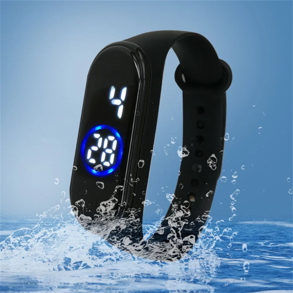 Fashion 50M Waterproof Digital LED Sports Watch Unisex Silicone Band Wrist Watches Feature: Movement: Digital Style: Sport Surface Material: Silicone Display: Digital Strap Material: Silicone Brand new and high quality Shows time digital numbers Display time in numbers indicate the hour, minutes and seconds. Additional White LED function to show the time clearly in dark areas 50 meters waterproof With its elegant and contemporary design, it is very popular A perfect present for friends,families, lovers etc Size:5.2 × 1.8cm Weight:18g Package Content: 1pcs Watch