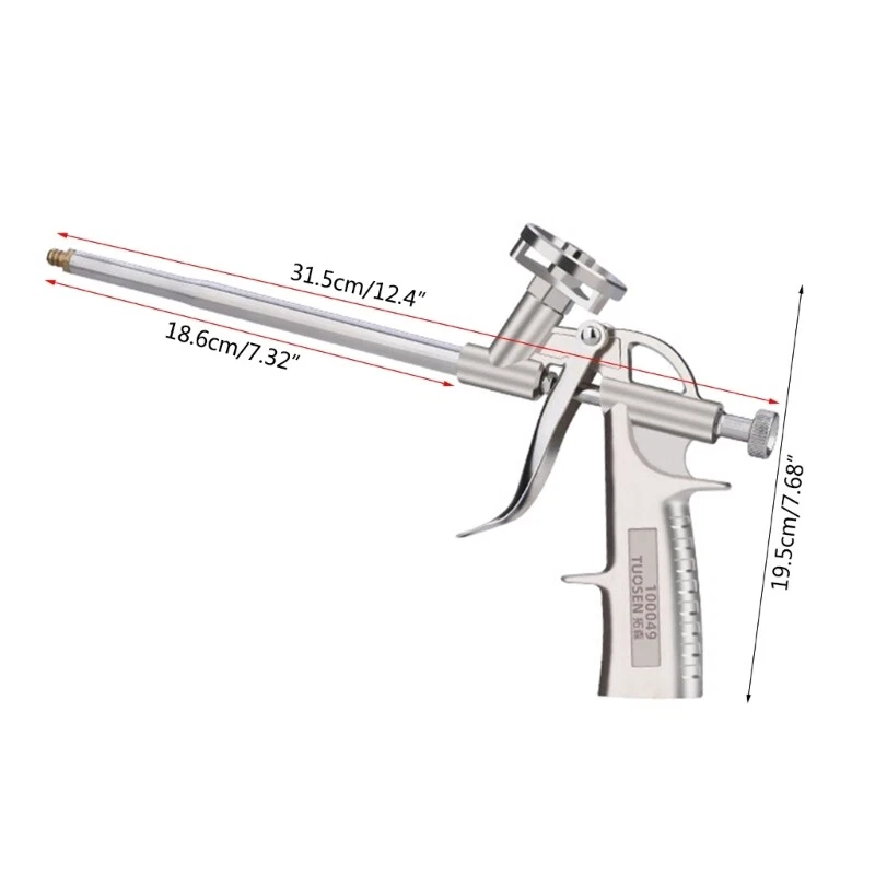 SprayGun Foam Expanding SprayGun Caulking Accessories Polyurethane Dispensing Features: and This expanding foamgun can be used to inject foam into the of and doors. Solid and lightweight and compact. and wear Ergonomic means it's comfortable to use for long periods of time. for filling, sealing and insulating small gaps. Sprung Triggers allows you to accurately controls Easy to Specifications: Alloy Total length: 31.2cm Barrels length: 18.6cm Total width: 18cm Package Includes: 1x Foam SprayGun note: Please allow 0-1cm error due to manual measurement. make sure you do not mind before you order. Due to the difference between different monitors, the picture may not reflect the actual color of the item. Thank you!