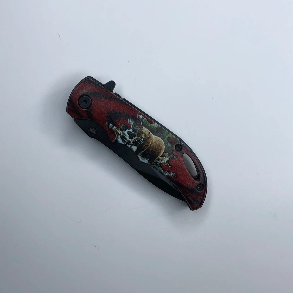 Unique Design: Eye-catching bear-themed design Spring-Assisted Opening: Fast and easy blade deployment Durable Blade: 3" drop point blade made from German surgical steel (3mm thick) Convenient Carry: Includes a pocket/belt clip for easy EDC Easy Storage: Quickly folds for safe storage Overall Length: 7 inches for a good balance of size and portability Great for: EDC, outdoor activities, camping, hiking, everyday tasks We strive for positive Feedback on all transactions. Your satisfaction is very important to us, if you experience a problem of any kind with your purchase please contact us first before leaving any feedback or opening any claims, any issues will be resolved more efficiently if you contact us first and deal directly with us. We do stand behind our products and will do anything in our power to make sure that you feel satisfied with your purchase. If you are not happy with your purchase, quality, DOA items. PLEASE email us , We would be more than happy to replace the item. Thank you for the cooperation.