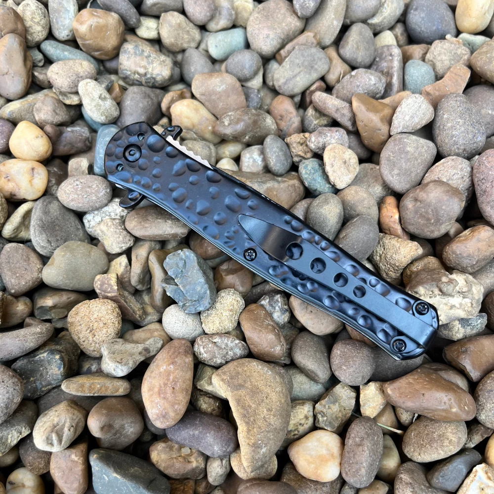 Introducing our premium 8.5" stiletto knife, a masterpiece crafted with precision and style. The striking hammered black finish adds a touch of modern sophistication, while the lightning-fast assisted opening mechanism ensures you're always ready for action. Key Features: 8.5" Overall Length: Commanding presence and impressive size. 4" Stainless Steel Blade: Durable and razor-sharp cutting edge. Hammered Black Finish: Unique and eye-catching design. Spring Assisted Opening: Quick and effortless deployment. Black Handle: Stylish and ergonomic for a comfortable grip. Perfect for: Outdoor enthusiasts Knife collectors Everyday carry (EDC) Tactical purposes Elevate Your Knife Collection Experience the perfect blend of form and function with this exceptional stiletto knife. Order yours today and discover the power and style of Italian craftsmanship. We strive for positive Feedback on all transactions. Your satisfaction is very important to us, if you experience a problem of any kind with your purchase please contact us first before leaving any feedback or opening any claims, any issues will be resolved more efficiently if you contact us first and deal directly with us. We do stand behind our products and will do anything in our power to make sure that you feel satisfied with your purchase. If you are not happy with your purchase, quality, DOA items. PLEASE email us , We would be more than happy to replace the item. Thank you for the cooperation.