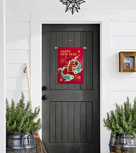Spring Chinese New Year Garden Flag Set Wood Dowel Lunar Good Luck Prosperous...