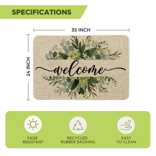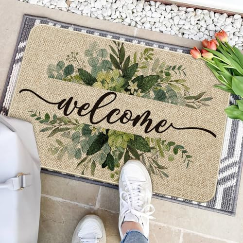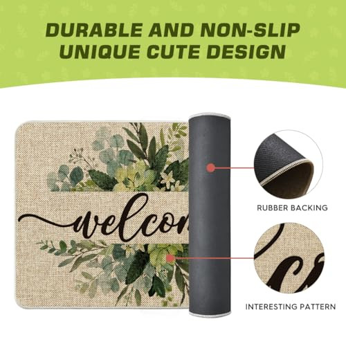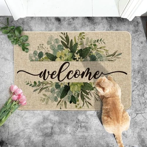 30 Days Return Policy Fast Delivery Trusted seller Eucalyptus Floral Leaves Welcome Spring Doormat, Summer Decor Low-Profile Switch Rug Door Mat Floor Mat for Indoor Outdoor 24x35 Inch Product Description PERFECT FOR HOME DECOR : Welcome guests to your home with this unique, seasonal doormat. Perfect for any deck, patio, porch, veranda, and entryway and extend a warm welcome to all who enter your home DURABLE AND NON-SLIP : Backed with non-slip recycled rubber and topped with polyester felt that is low-profile to reduce chances of tripping, high-quality durable construction that is stain resistant LOW-PROFILE DESIGN : Measures 24" x 35" and features 0.25" slim, making it just the right size for every entryway. Our stylish doormats make a beautiful addition to your entryways, craft rooms, and office spaces EASY TO CLEAN : No scrubbing needed. Doormats are quick and easy to clean, just spray off with a hose or use a sponge and mild detergent to clean off dirt or yard debris. Material: 5% Polyester 95% Rubber. Imported, Country of origin: China UNIQUE CUTE DESIGN : Doormat tops were printed with unique and stylish patterns. A beautiful and creative way to decor your home when keeping clean Shipping Returns Payment Shipping Shipping is FREE to all addresses other than APO/PO boxes in the lower 48 states. All our stock ships from US-based warehouses. Shipped via USPS or UPS (depending on location and package weight) Unless stated otherwise, all orders will ship within 24-72 hours of your payment being processed. Check our feedback to see the great reviews of FAST shipping we offer. Returns As our valued customer, we will do our best to make sure the product you receive arrives to you on time and as expected. If you are not satisfied with your purchase, please contact us within 30 days of receiving your order to process a return. Payment We currently accept payment via eBay managed payments only. Once payment is cleared, we will dispatch your shipment within 1-3 business days. Please refer to the "Shipping" tab for more information regarding shipping speed to your destination.