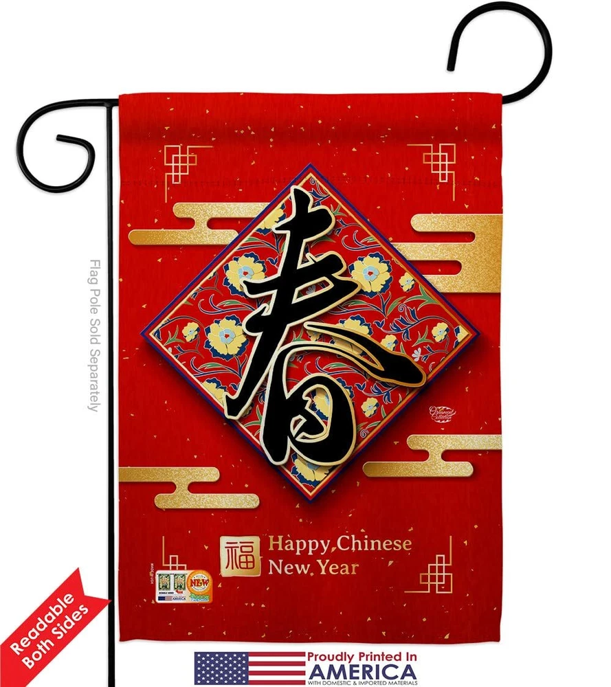 Spring New Year Garden Flag 2pcs Pack Lunar Good Luck Prosperous Seasonal Arr...