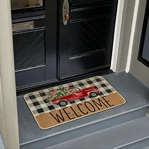 Return Policy Fast Delivery Trusted seller Welcome Spring Door Mat 17 x 29 Inch, Seasonal Truck Flower Decorative Doormat Non-Slip Rubber Backed Entryway Rugs for Indoor Outdoor Entrance Floor DM057 Product Description Spring decoration - Welcome guests to your home with this unique, seasonal doormat. Perfect for any deck, patio, porch, veranda, bathroom, Bedroom, kitchen and outdoor indoor entryway Durable and non-slip - Backed with non-slip recycled rubber and topped with 100% Burlap felt that is low-profile to reduce chances of tripping, high-quality durable construction that is UV and stain resistant Spring theme design - Measures 17" x 29" and features 0.25" slim, making it just the right size for every entryway. Our stylish doormats make a beautiful addition to your entryways, craft rooms, and office spaces. Keep the house clean - This rubber door mat can keep the house clean. You can clean it by shaking, sweeping or vacuuming, support machine wash which is very convenient and effective. Risk free - Each doormat, fade resistant and extra durable for lasting enjoyment. AND we offer 60 days money-back warranty and 24/7 customer support give you the best shopping experience ever. Shipping Returns Payment Shipping Shipping is FREE to all addresses other than APO/PO boxes in the lower 48 states. All our stock ships from US-based warehouses. Shipped via USPS or UPS (depending on location and package weight) Unless stated otherwise, all orders will ship within 24-72 hours of your payment being processed. Check our feedback to see the great reviews of FAST shipping we offer. Returns Seller does not accept returns Payment We currently accept payment via eBay managed payments only. Once payment is cleared, we will dispatch your shipment within 1-3 business days. Please refer to the "Shipping" tab for more information regarding shipping speed to your destination.