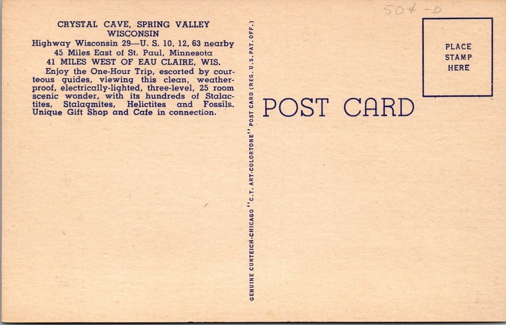 Spring Valley WI Onyx Column Crystal Cave Vintage Souvenir Postcard