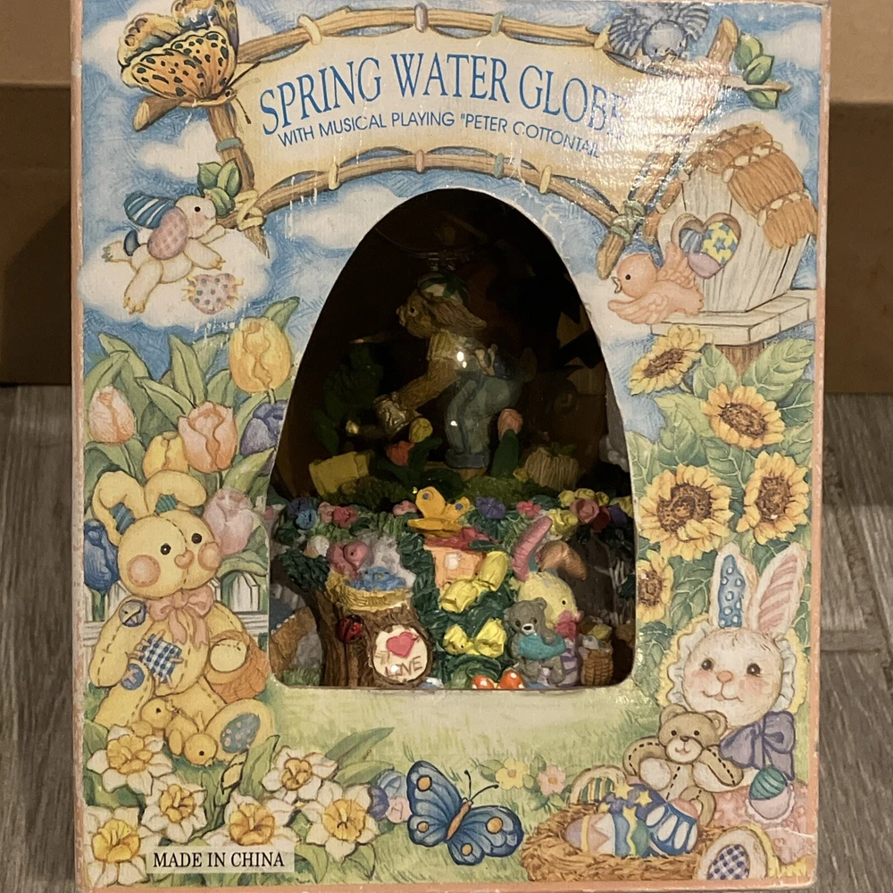 Spring Water Globe With Musical Playing Peter Cottontail Rabbit Easter Bunny. Condition is New. Shipped with USPS Ground Advantage.