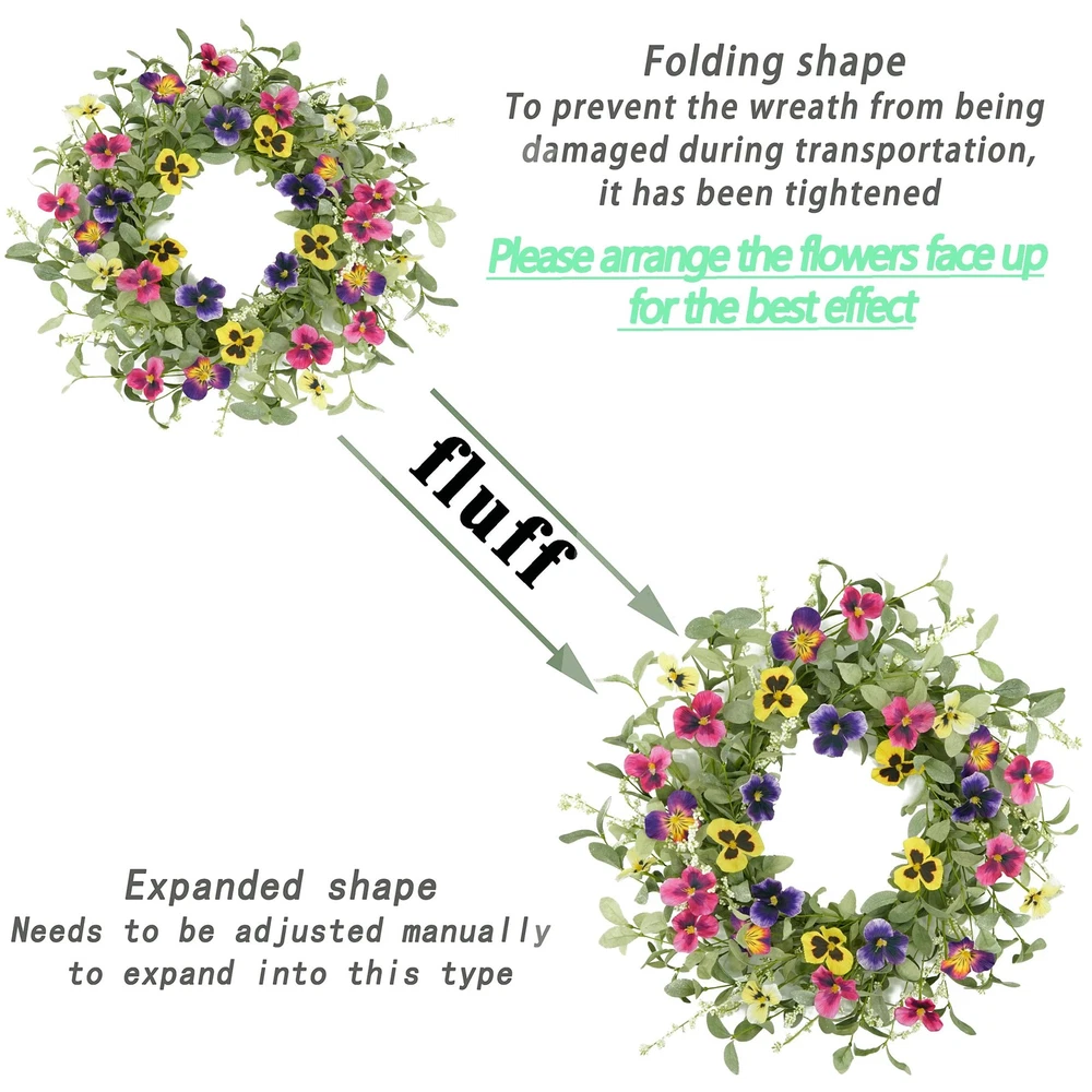 Spring Wreaths for Front Door Pansy Wreath with Colorful Pansy for Front Door Indoor Outdoor Farmhouse Home Porch Wall Window Festival Wedding Decoration 【Accessories are abundant】- 20 inch wreath sets off the lush green leaf decoration, pink pansy flower adds white flower seeds to make the whole wreath more vivid and plump, for the best display, please take the wreath out of the box and arrange it carefully 【Best Friends for spring summer wreath】- Suitable for spring, wedding, home, wall, window, front door, fireplace, living room, bedroom, dining room, fireplace, porch, window and other indoor and outdoor decoration. Add glamour to your spring and summer season with this striking daisy wreath. 【Multi-occasions】- The spring summer wreath can be used indoor or outdoor, place it on your front door, or hang it above your fireplace. It's also perfect for decorating weddings, birthdays, stages, bedrooms, offices, dining rooms, and others. 【Easy to Clean】- When used outdoors, please avoid rain and snow.This spring summer wreath is convenient to clean, just wipe it with a try towel to make the wreath like brand new. The green leaves and branches are not easily falling apart. This wreath can be used for a long time. 【Packaging Design】 - we pack the wreath to gift box and we Tighten the wreath when packing so that the wreath can be protected when delivery,pls open,fluff the wreath and adjust the branches and pansy flowers,the maximum size of wreath can be 20". wreaths for front door Shipping We offer FREE shipping on all orders! We ship within Three business days of payment, usually sooner. We use a selection of shipping services such as UPS, FedEx, USPS etc. We only ship to the lower 48 states, no APO/FPO addresses or PO Boxes allowed. Local pickups and combined shipping options are not provided at this time. Return You can return a product for up to 30 days from the date you purchased it. Any product you return must be in the same condition you received it and in the original packaging. Please keep the receipt. Payment We accept payment by any of the following methods: PayPal Please pay as soon as possible after winning an auction, as that will allow us to post your item to you sooner! Feedback Customer satisfaction is very important to us. If you have any problem with your order, please contact us and we will do our best to make you satisfied. Contact Us If you have any queries, please contact us via ebay. We usually respond within 24 hours on weekdays. Please visit our eBay store to check out other items for sale! Thank you for shopping at our store.