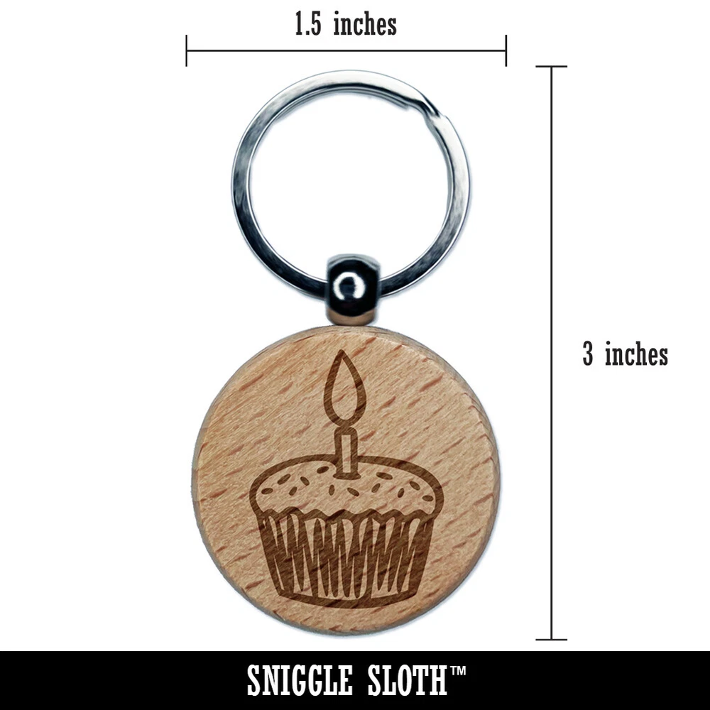 Sprinkled Birthday Cupcake with Candle Engraved Wood Round Keychain Tag Charm
