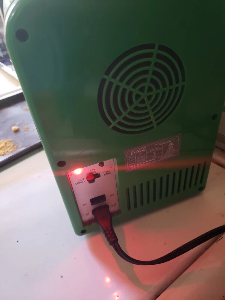 Capacity: Less Than 1 ft³ Power: Less than 200 W Open Door Width: Less Than 20 in Item Width: 7” Features: Heating/Cooling Finish: Plastic Glossy Item Depth: Less Than 10 in Type: Portable Fridge Brand: MINI Ice Maker Location: N/A Smart Home Compatibility: Not Smart Product Installation: Tabletop Unit Number of Drawers: No Drawers Number of Shelves: No Shelves Smart Home Protocol: N/A Material: 100% Plastic Energy Star: N/A Number of Freezer Compartments: N/A Country/Region of Manufacture: China Number of Doors: 1 Cable Length: 4 ft Defrost Method: Manual Defrost Item Height: 9” Model: Coca Cola Distributed By Koolatron Door Style: Single Door Color: Green Bottle Capacity: 6 CANS (12 OUNCE) Operating Sound Rating: Less Than 25 dB