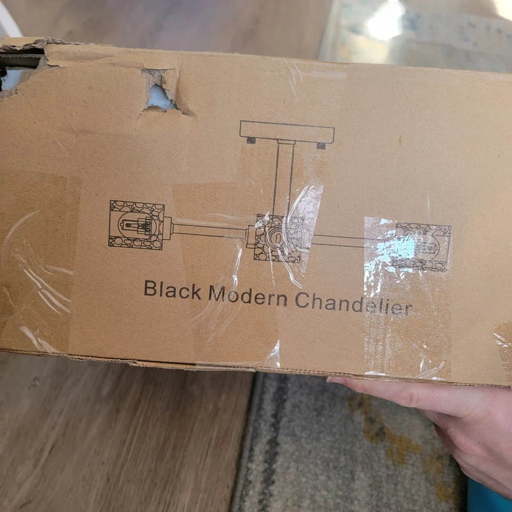 Black Modern Chandelier, 6-Light Crystal Semi Flush Mount Ceiling Light Fixture, 17.3" lFarmhouse Kitchen Pendant Light with Cube Shade, Industrial Sputnik Chandeliers for Dining Room, Bedroom