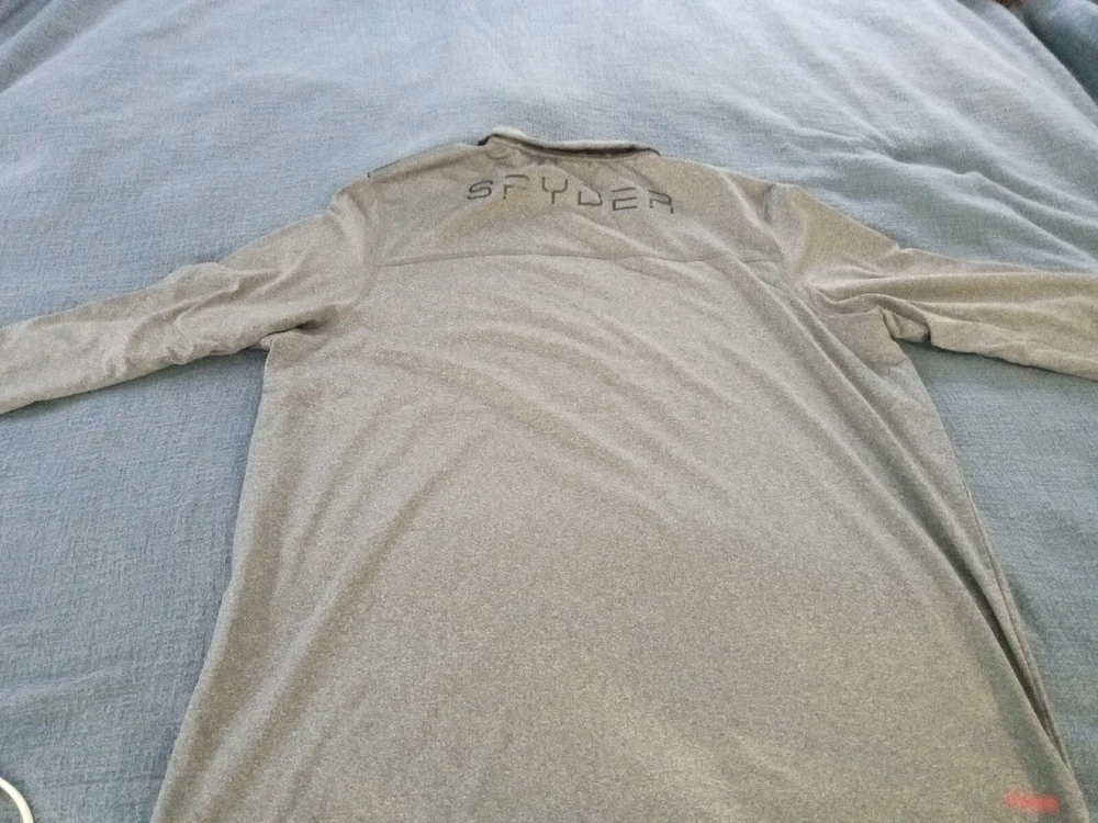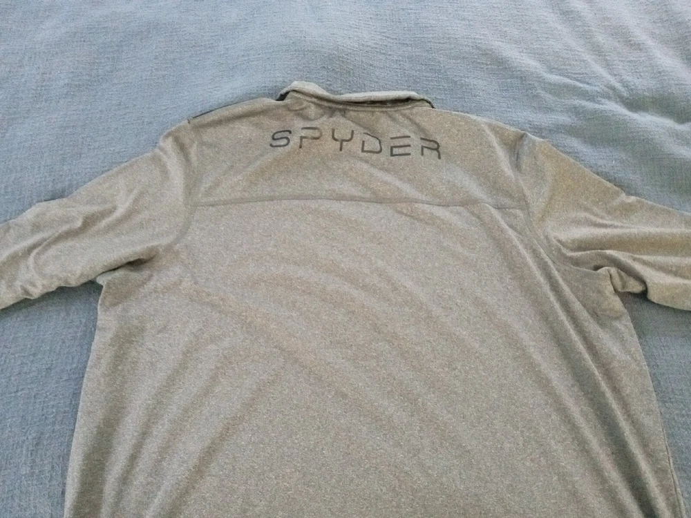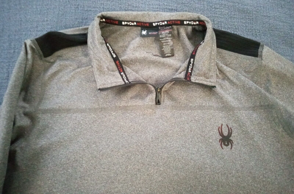 See the pics. We will ship from Florida. We are a small family business, your business is important to us. Please check our feedback. The McDonald Family. This Spyder Active Stretch pullover is the perfect addition to any athlete's activewear collection. The mock neck and long sleeves provide ample coverage while the 1/4 zip closure allows for easy ventilation during intense activities like tennis, cross training, cycling, and skiing. The polyester-spandex blend fabric with stretch and quick dry features ensures maximum comfort and breathability during even the toughest workouts. The gray pullover features reflective shoulder stripes for added safety during low-light activities like walking, hiking, and running. It is a size 2XL and comes from the Spyder Active pduct line.