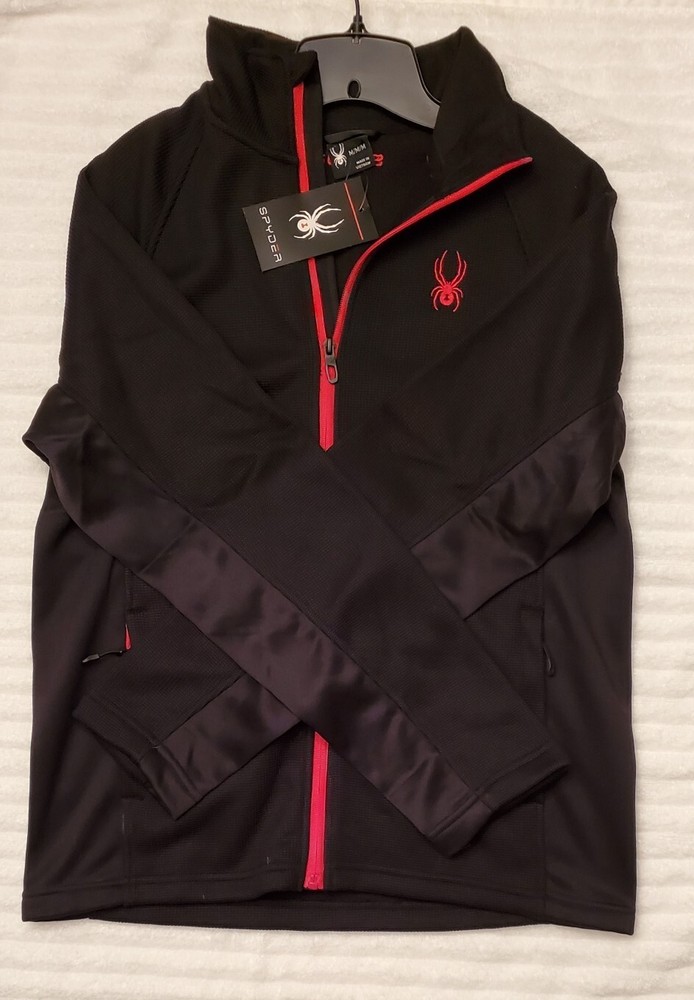 Spyder Full Zip Jacket - Men's Medium (Black with red trim) 3 Available. True to Size New with Tag. Performancewear for Winter Sports and Activities, and looks great for Apres' Ski as well ! Great as a Car Coat ! BUY NOW