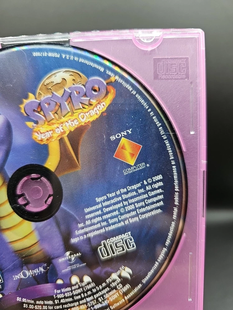 Manufacturer Warranty: 1 Year Platform: Sony PlayStation 1 Region Code: NTSC-U/C (US/CA) Game Name: Spyro: Year of the Dragon Publisher: Sony Release Year: 2000 Genre: Action & Adventure Rating: E-Everyone