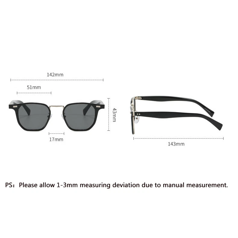 Square Classic Sunglasses Men Fashion Outdoor Driving Party Shade Glasses UV400 Description Brand: FELRES Frame Material : Plastic Lens Material: Plastic Visible Perspective Rate: 99% Anti-UV rating: UV400 Whether polarized : No. Gender: Men Lens width: about 51 mm Lens height: about 43 mm Bridge: about 17 mm Frame Width: about 142 mm Temple Length : about 143 mm Package included: 1*Sunglasses (Not include boxes and other accessories) Note: 1. Due to the different monitor and light effect, the actual color of the item might be slightly different from the color showed on the pictures. Thank you! 2. Please allow 1-3mm measuring deviation due to manual measurement. Brand FELRES MPN Does Not Apply Type Sunglasses Country/Region of Manufacture China Model 1041 Frame Material Plastic Lens Material Plastic Department Men Style Square Lens Width 51 mm Lens height 43 mm Bridge Width 17 mm Frame Width 142 mm Temple Length 143mm UV Protection UV400 Features Reflective Lens Technology Anti-Reflective Theme Classic, Designer, Outdoor Personalized No Frame Color Multicolor