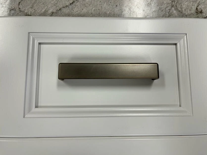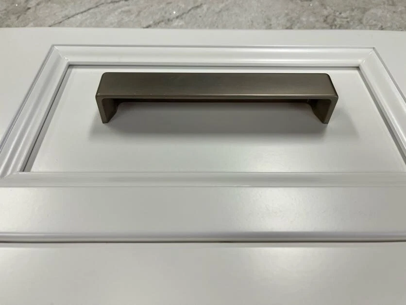 We are Dream Kitchens, Inc. , a five-star kitchen and bath design studio. Square cup handle pull Dimensions: 5-1/4" Length; 7/8" width; 7/8" Height finish: brushed nickel New in the box! Thanks for looking! Look for our other auctions on eBay!
