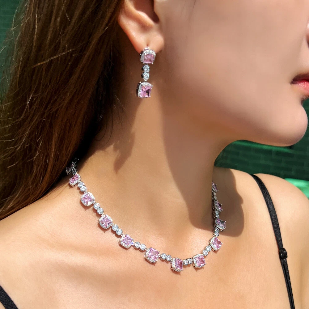 Square Drop Wedding Necklace Earrings Set Silver Plated CZ Bridal Pink Jewellery Specifications : Condition:New Necklace Length : 42 cm with 2.5 cm extension Earring Size : 3 cm Material : Cubic Zirconia Features : 1. 100% Brand New and high quality. 2. Luxury and Gorgeous design, you deserve it 3. Brillant Simulated Diamond - Top Level Cubic Zirconia. Enjoy the Dazzling Sparkle from Cubic Zirconia. 4. Our Fashion Necklace and Earrings sets are perfect gift for Women , Brides , Mother , Girls . 5. Perfect for Various Occasions: Ideal for Bridal, Wedding, Prom, Pageant, Bridesmaids, Parties, Proms, Homecoming, Black Tie Formal Affairs, Holidays, Special Occasions, Birthday, Valentine's Day, Mother's Day or Anniversary Gifts. Package Includes: 1Pc Necklace 1Pair of Earrings Payment Delivery details Terms of sales & Feedbacks About us & Contact us Our commitment Payment 1. We only ship item to your Ebay verified address . Please Make sure all address are the same 2.Please leave note in ebay when making the payment if you have any special request (colors/size). Delivery details We only send items to the registered eBay address.Items will be shipped within 2 business days from the date payment is received (not include public holiday and weekend) . As per eBay regulations, import duties, taxes, and customs charges are the buyer's responsibility. Please check with your country's customs office to determine what these additional costs may be prior to bidding or buying. Terms of sales & Feedbacks After-Sale Please contact us to request a return/replace/refund authorization .It will be best if you use ebay message to contact me. 1, Return and replacement request is available only the requests within 30 days after parcel received. 2, Returning the item as the same condition as received. Situation and solution Defectives ---Please contact us and provide a photo of the defective part. After situation confirmed,we will offer you refund/return/replacement according to the situation Not as Described ---Please contact us and provide a photo of the wrong part. After situation confirmed,we will offer you refund/return/replacement according to the situation Not Received ---Please undersatnding shipping on the way was out of our control ,because of the busy shipping season,holidays,bad weather or force majeure etc. It may be delay for days. But if it took too much time and not deliveried, Please message me, I will offer you solution for it. Feedbacks 1. If you are satisfied with our service, please leave us a + Good feedback and rate the details of the transaction (DSR) with a. . When you rate the shipping time part please take international transit into consideration.] Your recognition will make us more confident to develop business and serve you better. 2. Please contact us first if you have any problem with the items,we will solve it in time ! 3. Please do not leave Neutral or Negative Feedback before you contact us, Thanks For Your Business ! About us & Contact us Working time: Chinese time(Eastern eight zones):Monday to Friday ,9:00 am to 6:00 pm. We do not work on chinese legal holiday. Message reply: We will reply all messages within 24 hours of business time. Please contact us via ebay message, it was the best way for both you and us to solve problems. Any questions or anything you need, please feel free to contact us. Our commitment 1.Wholesale price will be offered to you if you need in bulk ! 2.About Size