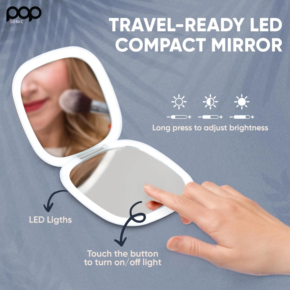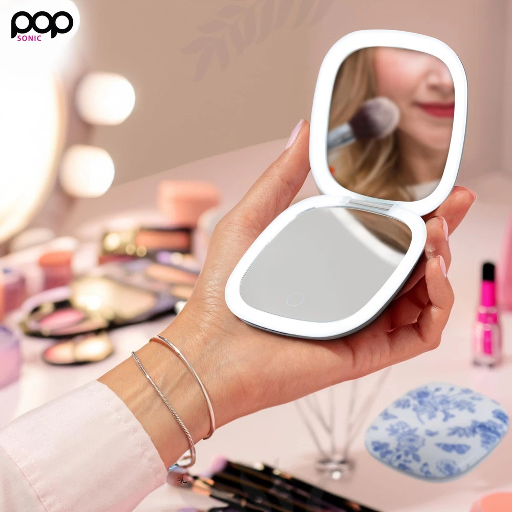 Square LED Compact Mirror - Adjustable Brightness Light Up Travel Mirror w/ 1x/5x Magnifiers - Portable Makeup Mirror w/Dual-Sided LED Lights (Blue Floral) Product Details Color: Blue Floral Brand: Pop Sonic MPN: P_S_SM UPC: 819573024791 EAN: 0819573024791 Brand: Pop Sonic Room Type: Home Office Shape: Square Product Dimensions: 5"L x 5"W Frame Material: Plastic Brand: Pop Sonic Room Type: Home Office Shape: Square Product Dimensions: 5"L x 5"W Frame Material: Plastic Style: Classic Mounting Type: Floor Mount Finish Type: Painted Surface Recommendation: Hard and Flat Surface Special Feature: Portable Color: Blue Floral Theme: Floral Specific Uses For Product: Makeup, Skincare, Travel Number of Pieces: 1 Number of Items: 1 Material: Plastic Frame Type: Framed Item Weight: 8 ounces Assembly Required: No Frame Color: Blue Manufacturer: Pop Sonic UPC: 819573024791 Country of Origin: China Item model number: P_S_SM Date First Available: September 23, 2020 Light Up Compact Mirror: Boost your beauty routine with our led compact makeup mirror. This square portable mirror with lights features 1x/5x magnifiers, dual-sided LEDs, and a rechargeable cable is your perfect beauty companion, wherever life takes you! Adjustable Brilliance: Our Pop Sonic compact mirror will Illuminate with ease by long-press for your preferred brightness. This square travel LED mirror has an easy touch button control to elevate your makeup and skincare routine anytime, anywhere! Continuous Rechargeability: This compact magnifying mirror with light features a rechargeable cable, ensuring seamless on-the-go charging. Our magnifying travel mirror uninterrupted moments of radiance and beauty enhancement, are always prepared for your glowing beauty. Versatile Utility: This square rechargeable makeup mirror with lights is your reliable beauty essential, ready to accompany you for every occasion. Our cute compact mirror ensures flawless makeup or skincare routines whenever you need them! Folding Design: The Foldable pocket mirror for purse design allows this mirror to fit Perfectly in Purses, Makeup Cases, and Travel Bags, making the foldable mirror with lights your essential companion for beauty on the go, wherever your adventures take you.