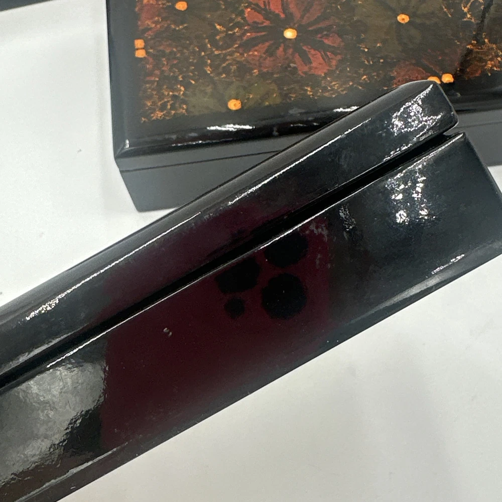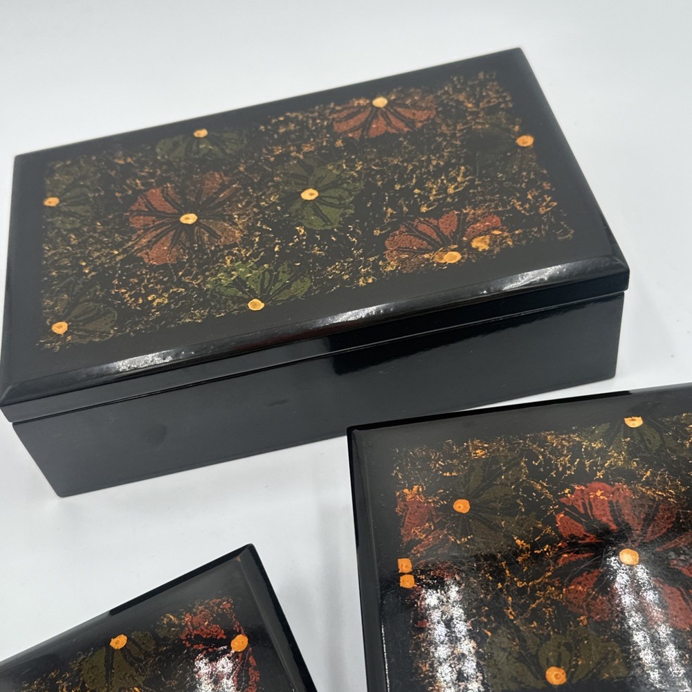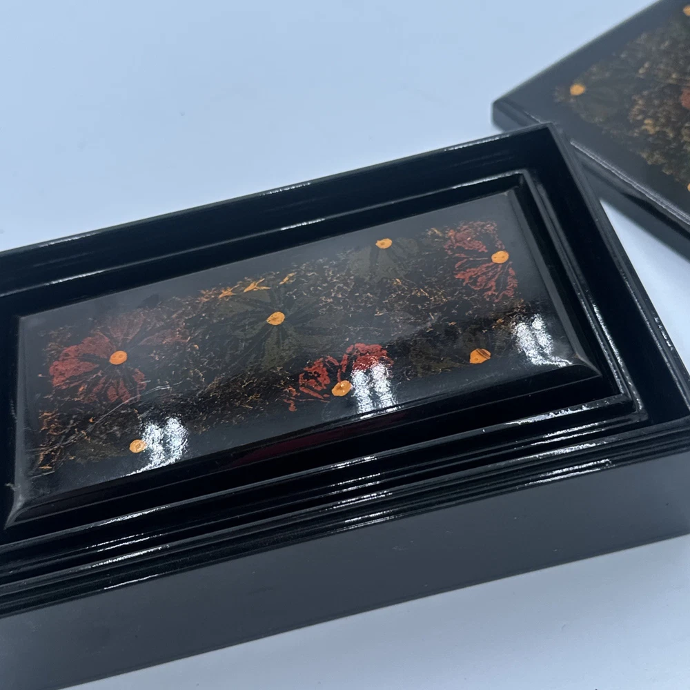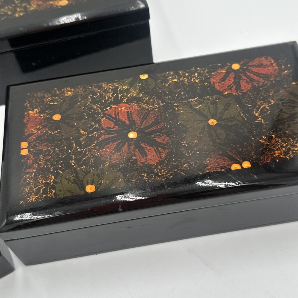 Square Lacquered Jewelry Box Hand-Painted In Vietnam (Flowers) Nesting Boxes 3