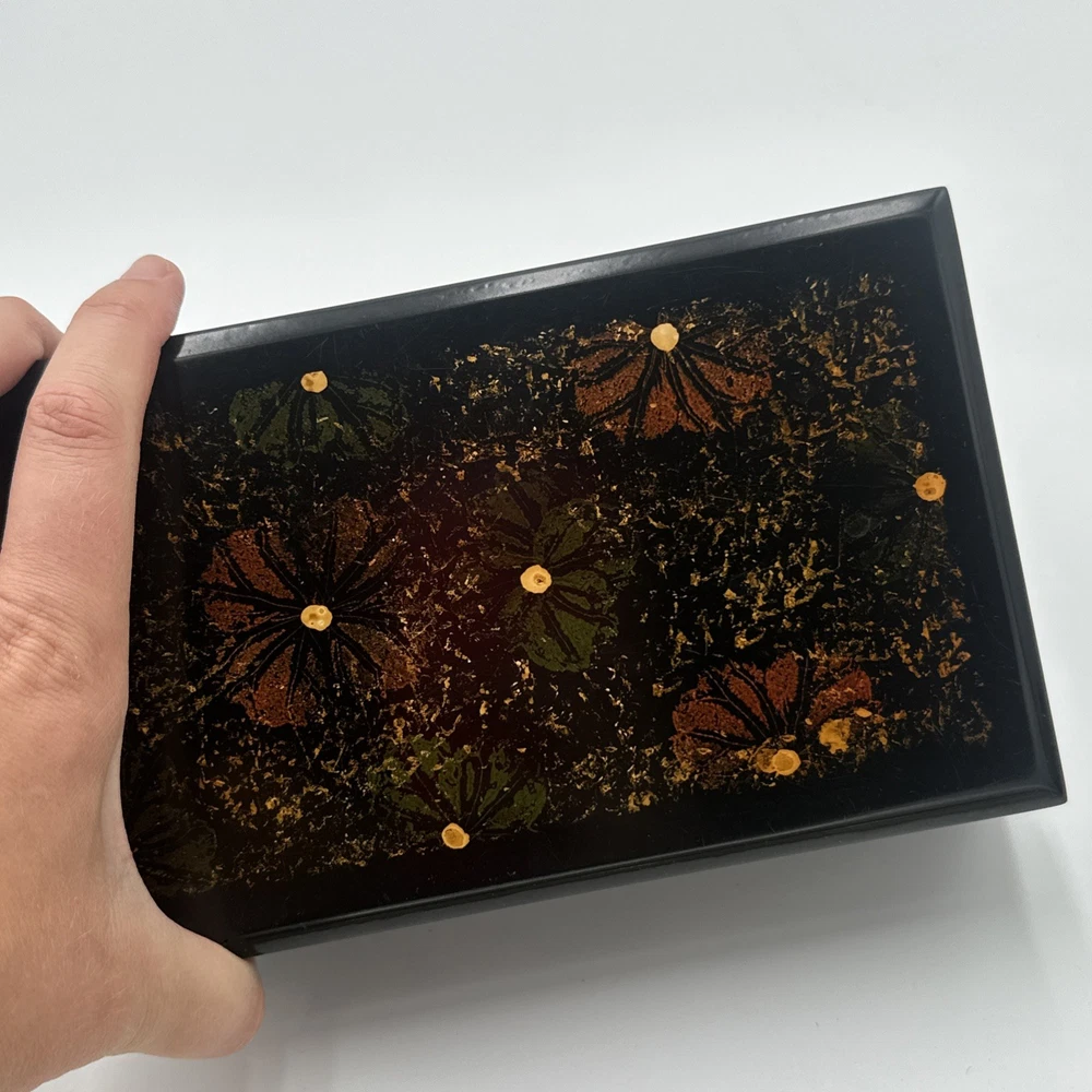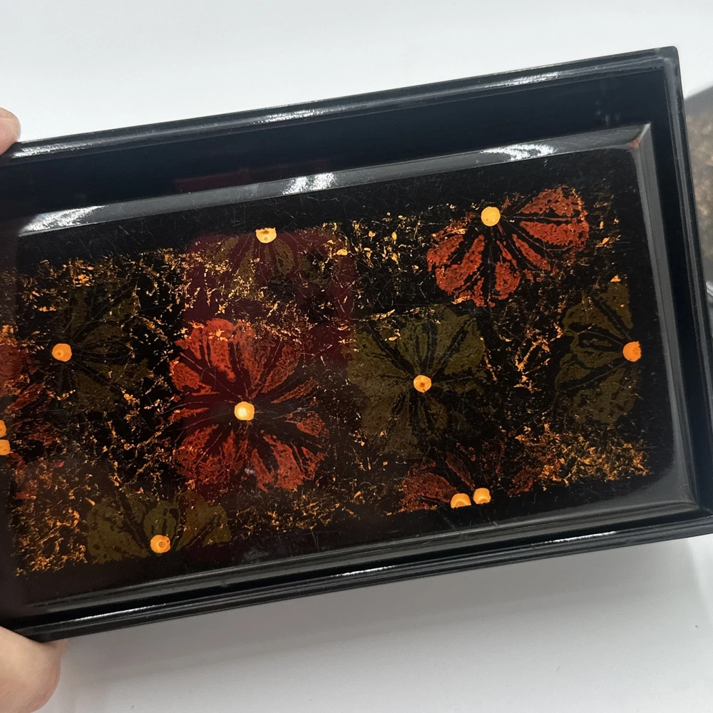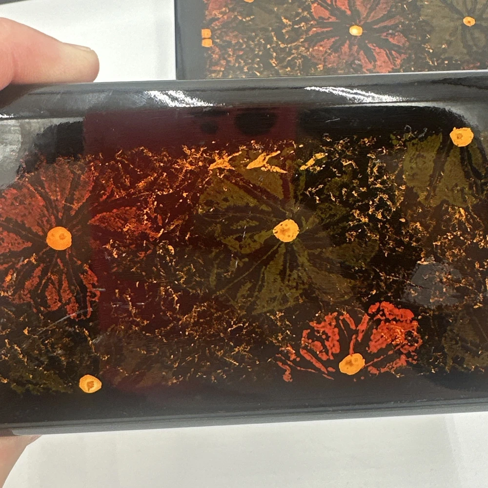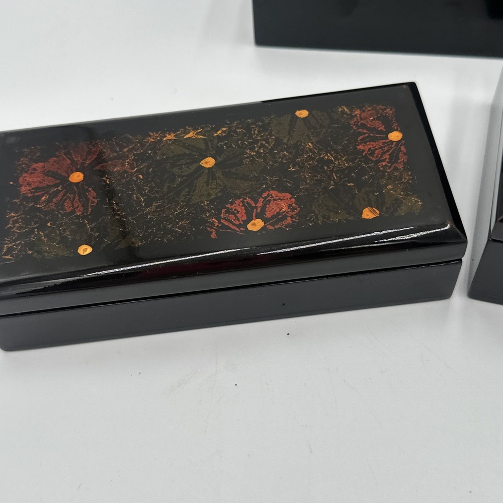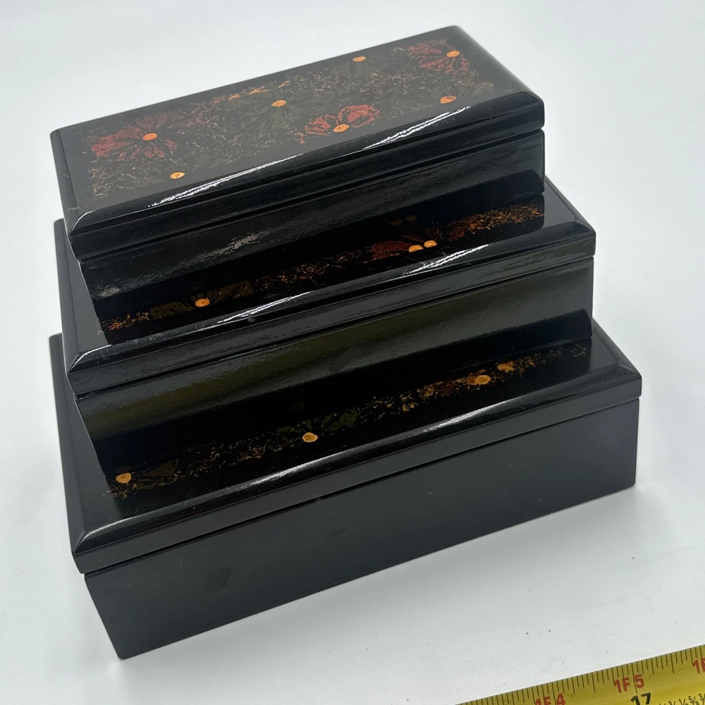 Square Lacquered Jewelry Box Hand-Painted In Vietnam (Flowers) Nesting Boxes 3
