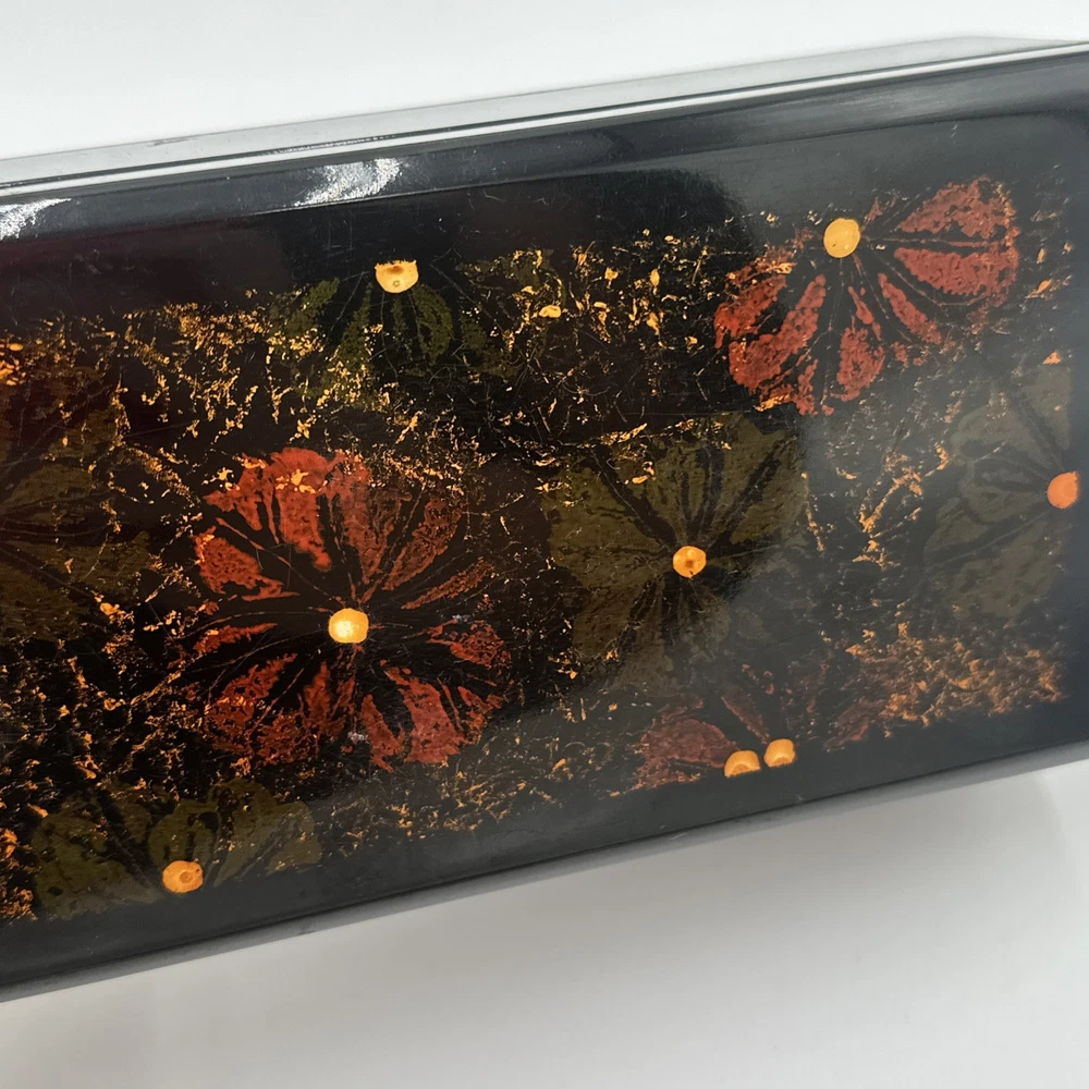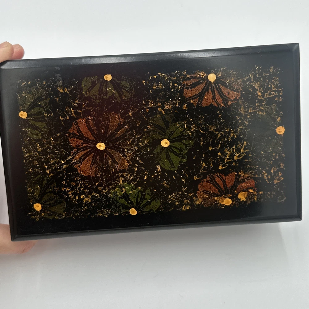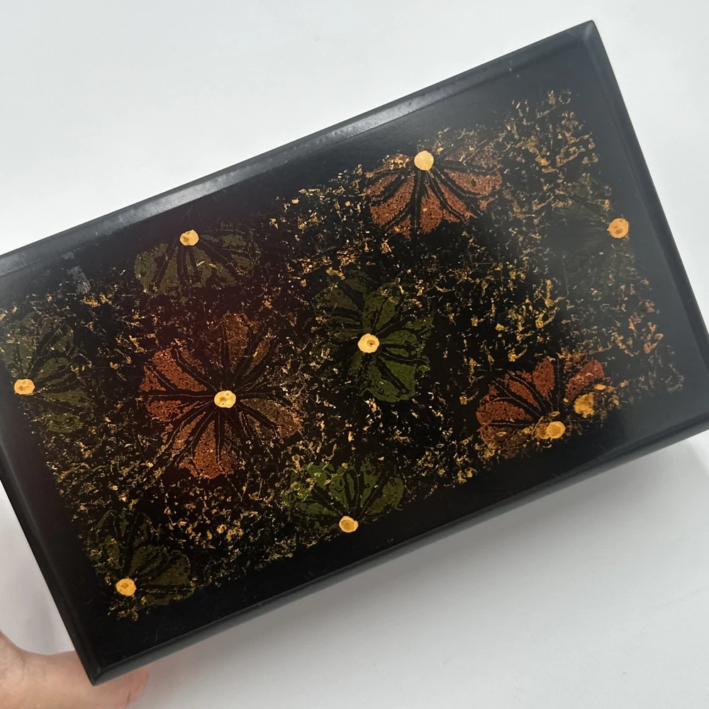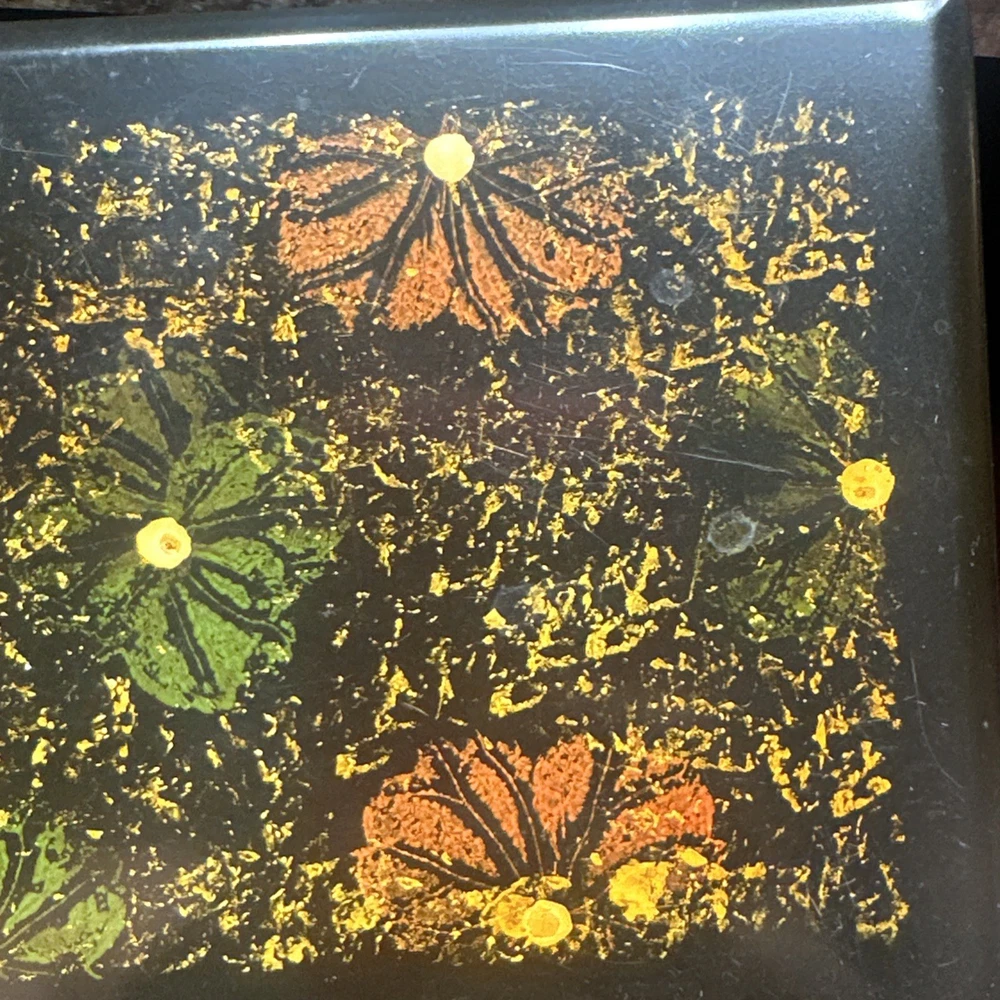 Square Lacquered Jewelry Box Hand-Painted In Vietnam (Flowers) Nesting Boxes 3