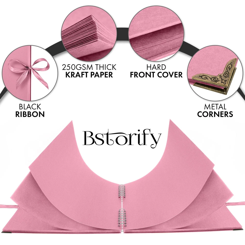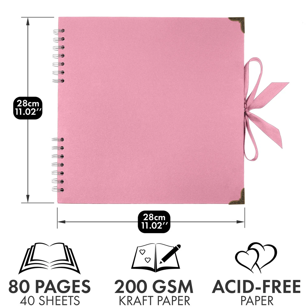 Scrapbook This 11 x 11 Inch scrapbooks is durable and suitable for long term storage for you and your loved ones beautiful memories. It has 40 sheets, 80 pages of high quality thick paper, designed with ribbon closure, hard cover and corner protectors The spiral bound spine allows the scrap book to expand to fit in your photos, postcards, souvenirs. You can tie the ribbon into a bow or other style that you like and make your photo album scrapbook as individual as your memories and keep them endlessly The hardcover protects the pages, you can design the hardcover and inside pages of this photo book with paints, pens, stickers and even add glitter for a touch of sparkle and shine. You can look back over time at your amazing creation, So get creative now Scrapbooking is all about telling a story so think about the experiences in your life that means the most to you, lays flat on the desk, hold your art pen, write and record your happy memories beside the photos, Easy to fit 6 x 4 inch photos It makes an ideal gift for Anniversary, Mothers Day, Birthday, Valentines Day, Christmas, Wedding guest book, Baby memory book and for recording your travels or add your creative touches and embellishments to make it your own. Package Includes: 1 x Scrapbook