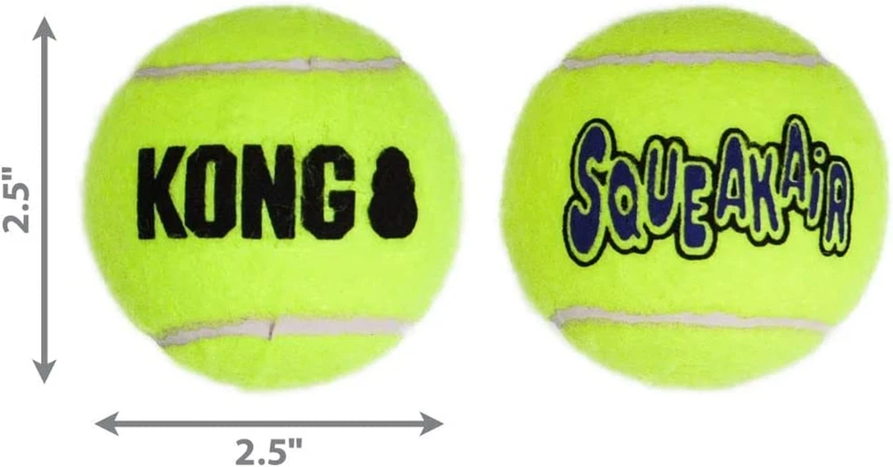 Perfect for games of fetch Squeaker to induce play Non-abrasive tennis material will not wear down your dog's teeth The KONG Squeakair Ball combines two classic dog toys - the tennis ball and the squeaker toy - to create the perfect fetch toy. Our durable, high-quality Squeakair tennis ball will not wear down your dog's teeth. It's made with a special non-abrasive felt, compared to the abrasive material on normal tennis balls. Covered by KONG Satisfaction Guarantee. See KONG Satisfaction Guarantee document below for full details.