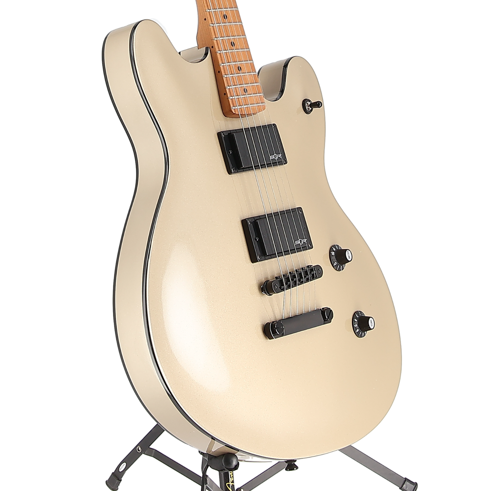 Up for sale is a Squier Contemporary Active Starcaster in Shoreline Gold ! The guitar is in excellent condition! The electronics have been play tested and are working as intended. There may be some light surface scratches to the finish of the guitar. Description The Starcaster broke the mold of semi-hollow guitar design with its offset body shape when it was introduced in the '70s, offering versatile sounds and out-of-this-world styling for the most adventurous players. The Squier® Contemporary Active Starcaster® is an evolution of the original Fender model, engineered with a sealed semi-hollow body for minimized feedback and powered by dual Squier SQR™ active ceramic humbucking pickups for massive high-output signal. The roasted maple neck was chosen for its optimal tone and stability, and a sculpted heel design allows for improved access all the way to the 22nd fret. High-performance components round out the feature list and include a fully adjustable bridge with stop tailpiece for rock-solid string feel, and a set of sealed-gear tuning machines with split shafts for smooth tuning action and easy restringing. Eye-catching styling cues include stealthy black chrome hardware and a sleek matching painted contoured headstock with chrome logos for a premium look. Features Squier SQR™ active ceramic humbucking pickups Adjustable bridge with stop tailpiece Roasted maple neck Sculpted neck heel Painted contoured headstock with chrome logos Franklin Guitar Works - Who We Are FGW is a division of MIRC, LLC (Musical Instrument Reclamation Corporation), located in Franklin TN. MIRC is the world?s largest refurbisher of stringed instruments. We partner with the leading manufacturers in the industry, helping them recondition their distressed instruments. All of our instruments have been inspected, set up, and refurbished by our certified technicians to ensure you are receiving a quality instrument. Hours of Operation Our online Business hours are Monday - Friday 7:30 am to 4:00 pm CST. Closed on weekends and holidays. Shipping Policy Free ground shipping within the continental USA. Items under $20 will have a $9.95 shipping charge. We do not offer international shipping. We cannot ship to a PO Box. Orders require a physical mailing address to be processed. All orders over $500 will be shipped with a direct Signature Requirement to ensure it is received. If the signature requirement is refused, the customer will assume responsibility for the package once it reaches the delivery address. Orders are processed Monday through Friday, 7:30am - 4:00pm CST. Shipments are prepared in the order that they are received. We make every effort to expedite orders as quickly as possible, but we cannot guarantee ship dates. Please allow up to 3 business days for tracking information. Thank you for your business!